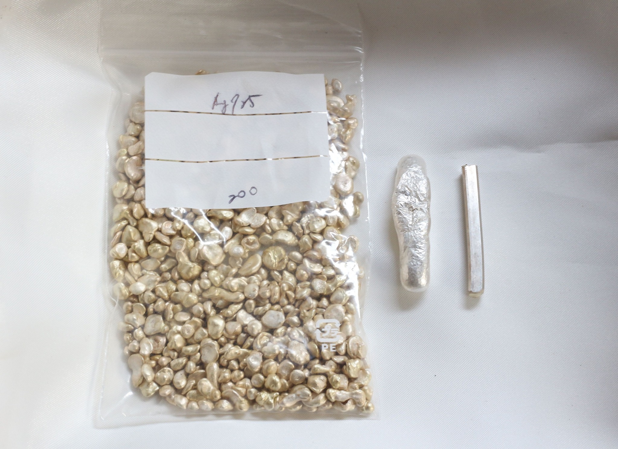 左の細かな地金は業者から仕入れたササブキと呼ばれる状態の物。