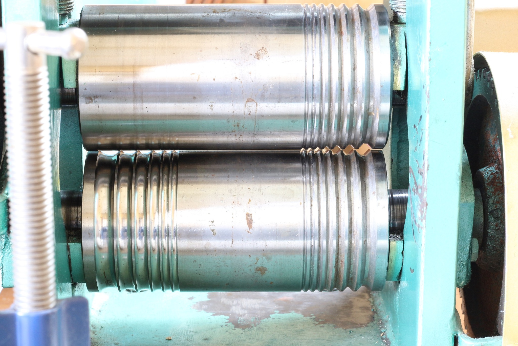 地金の塊を挟み徐々に伸ばせる工具になります。