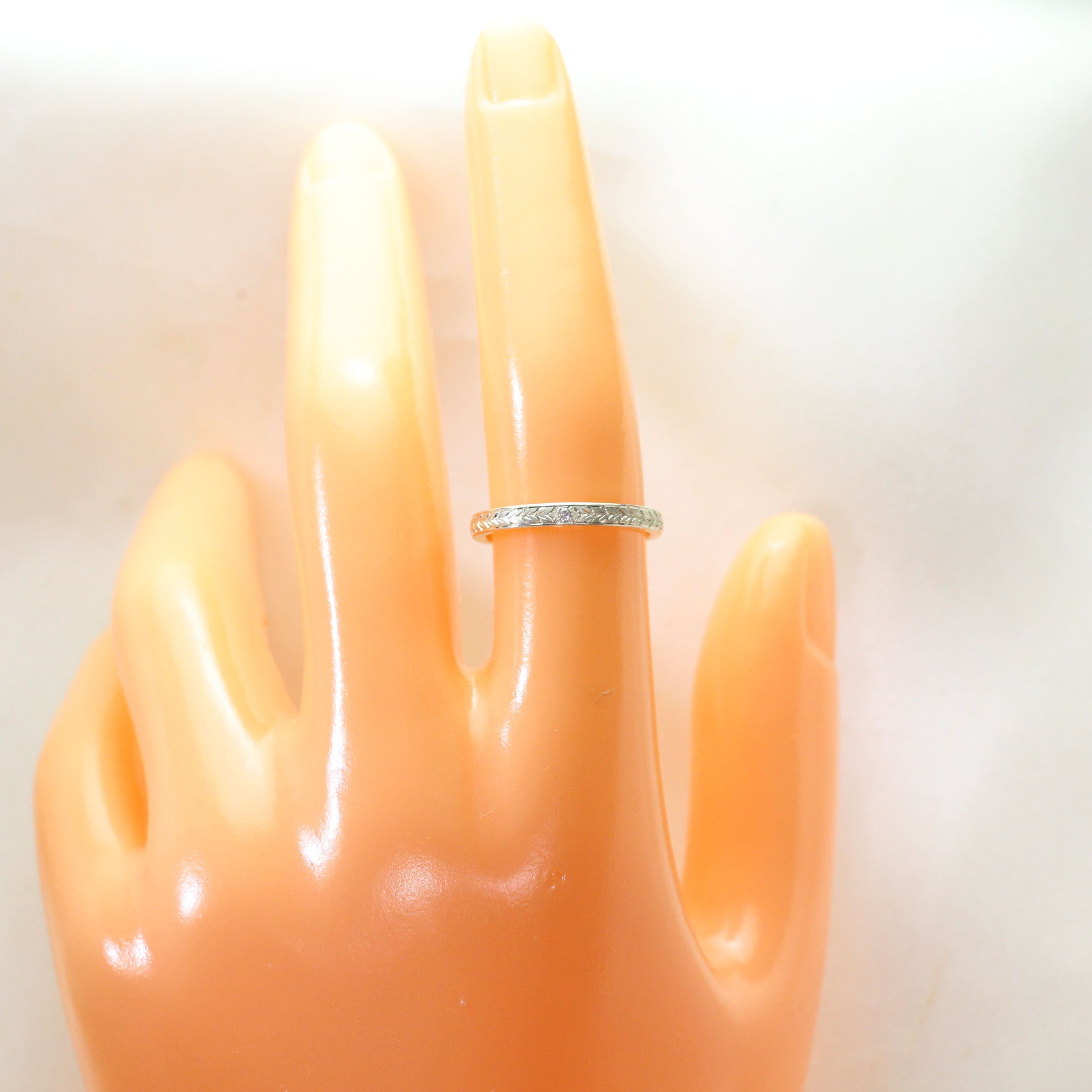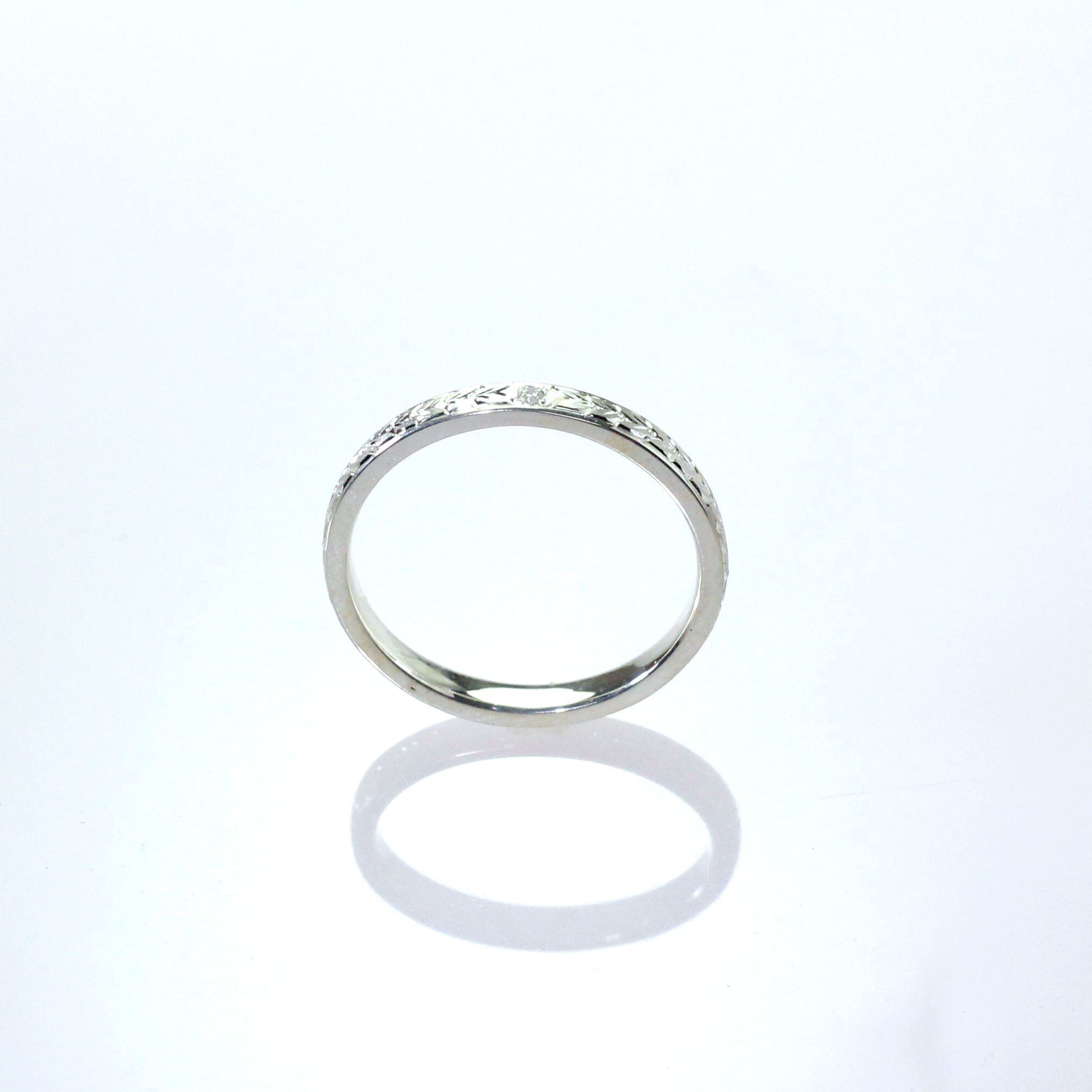 Pt900 手彫りリング(ダイヤモンド&月桂樹) 2mm幅