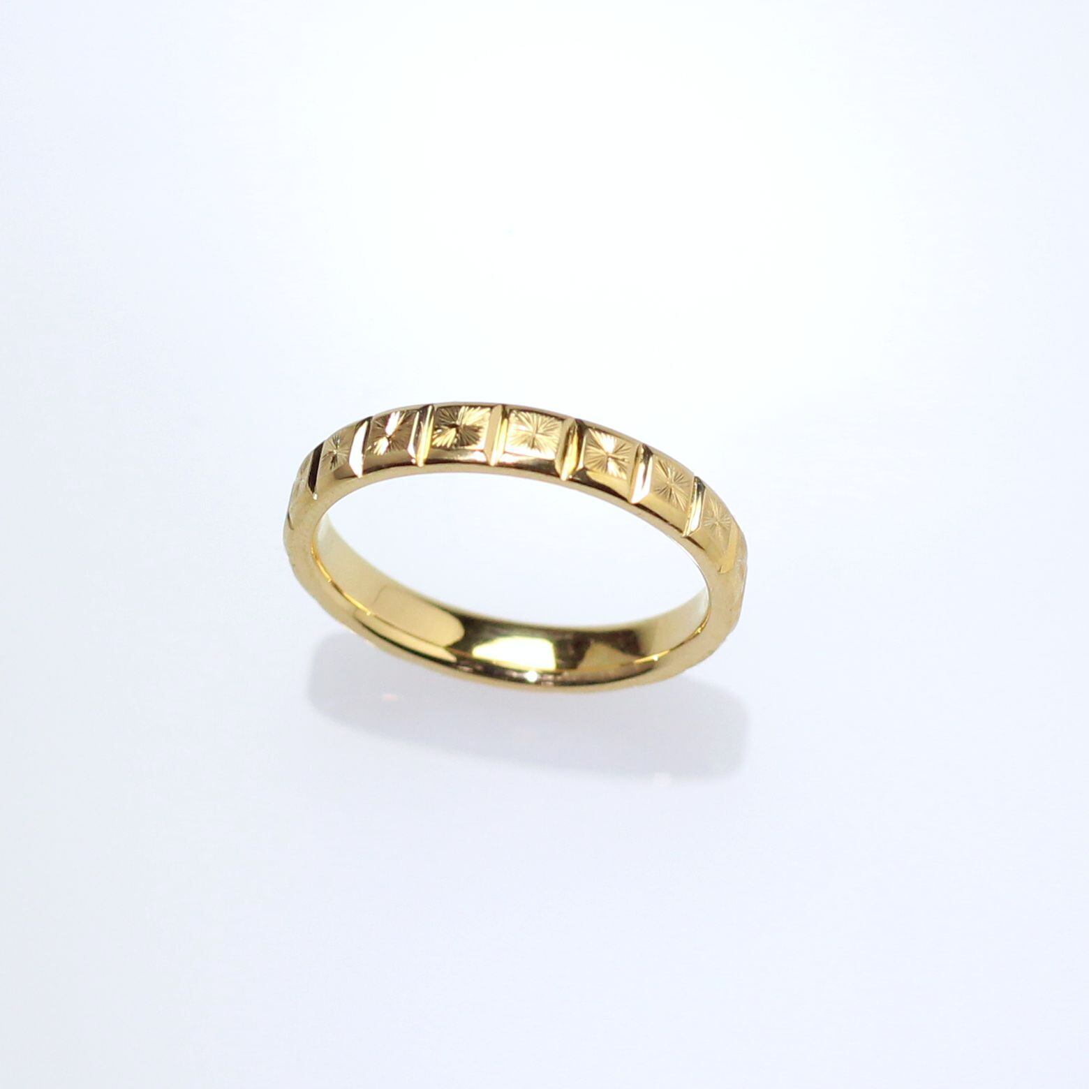 スクエア(四角形)が並んだシャープな印象のリングになります。
