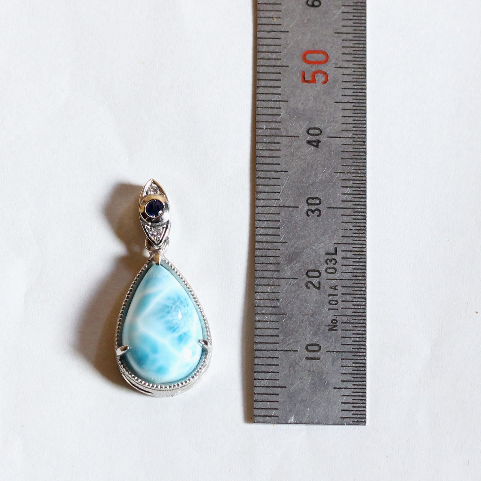 素材 Pt900 ラリマー9.46ct(17×11㎜) ブルーサファイア0.06ct(2.5㎜) ダイヤモンド0.02ct(約1.3㎜×2p)
