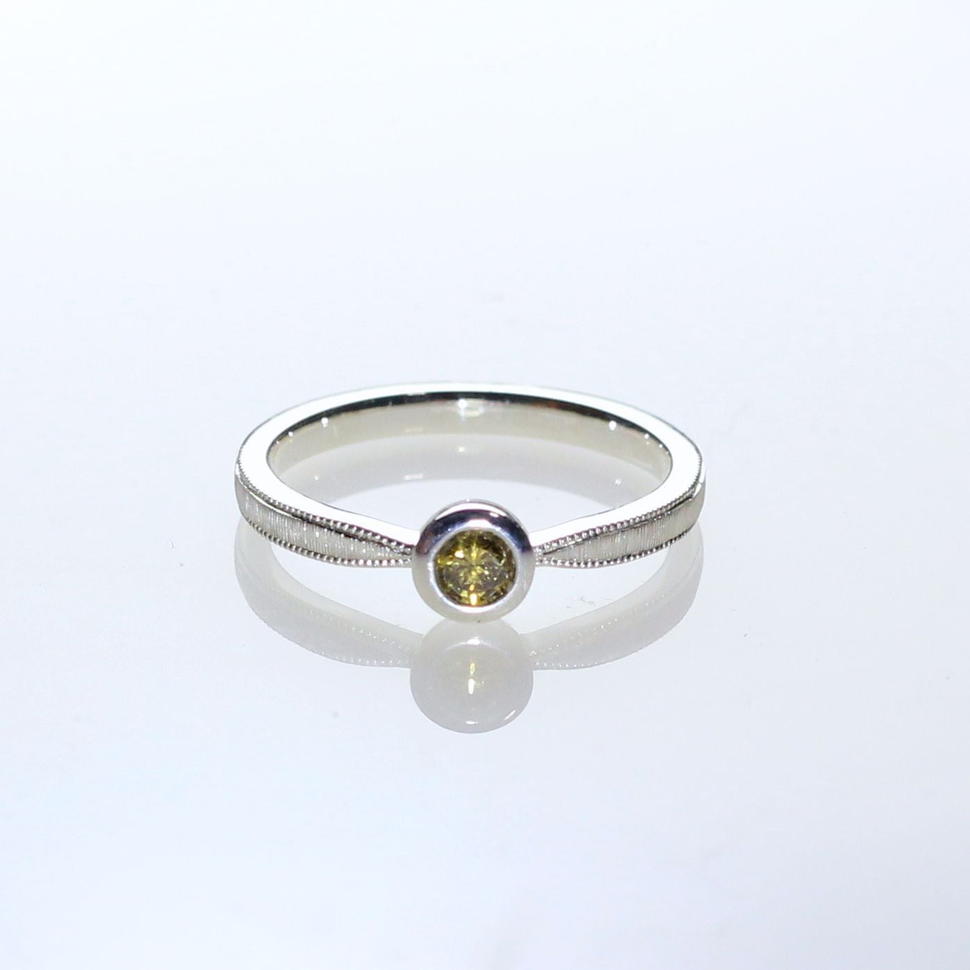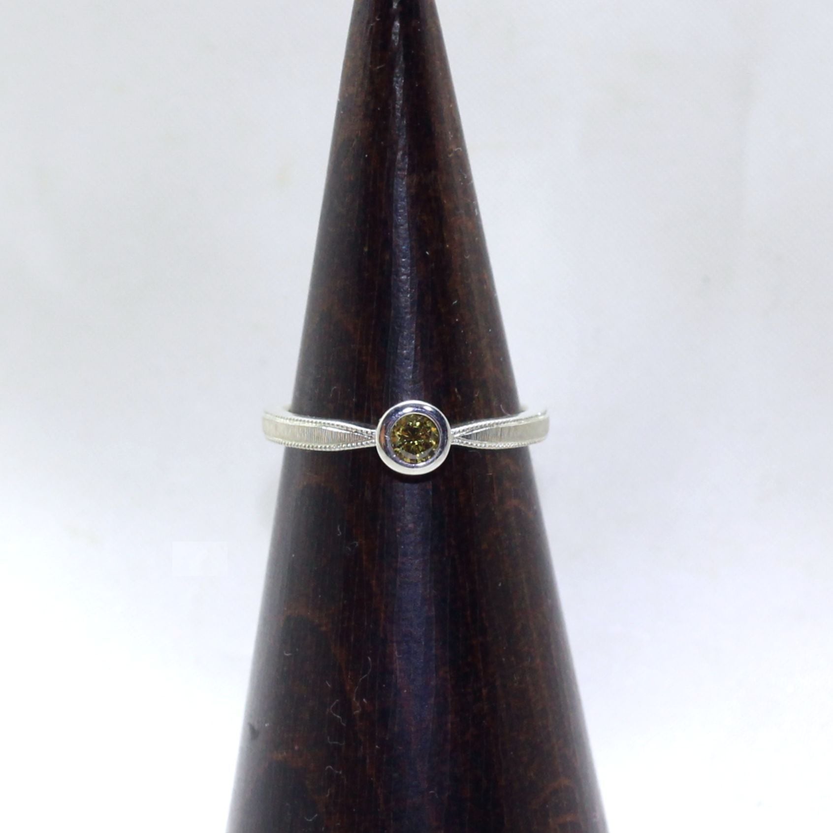 Pt900 ファンシー ディープ イエローダイヤモンドリング 0.166ct(中宝ソーティング付き)