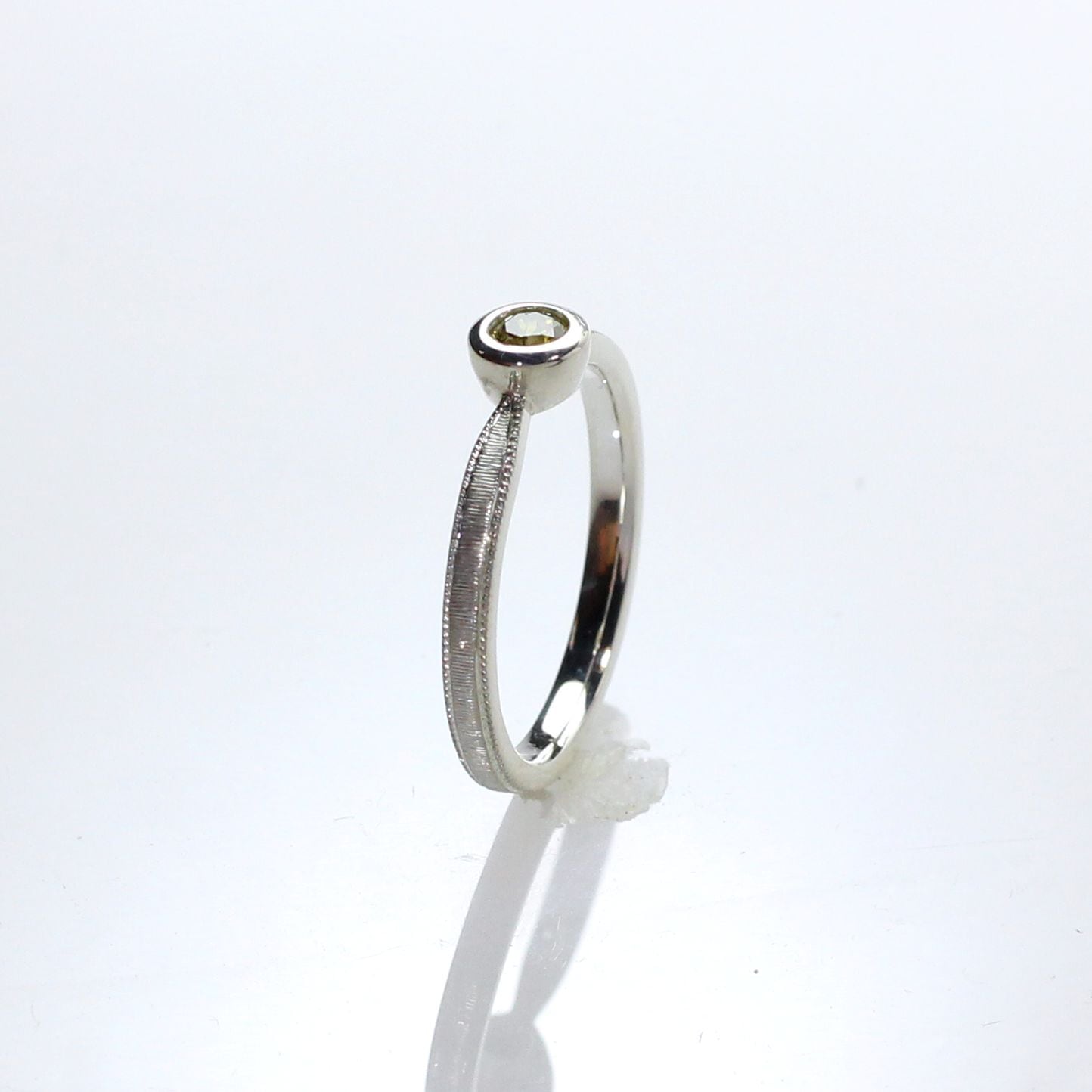 強い輝きを引き出すカット、ラウンドブリリアントカットのダイヤモンドをセットした指輪になります。