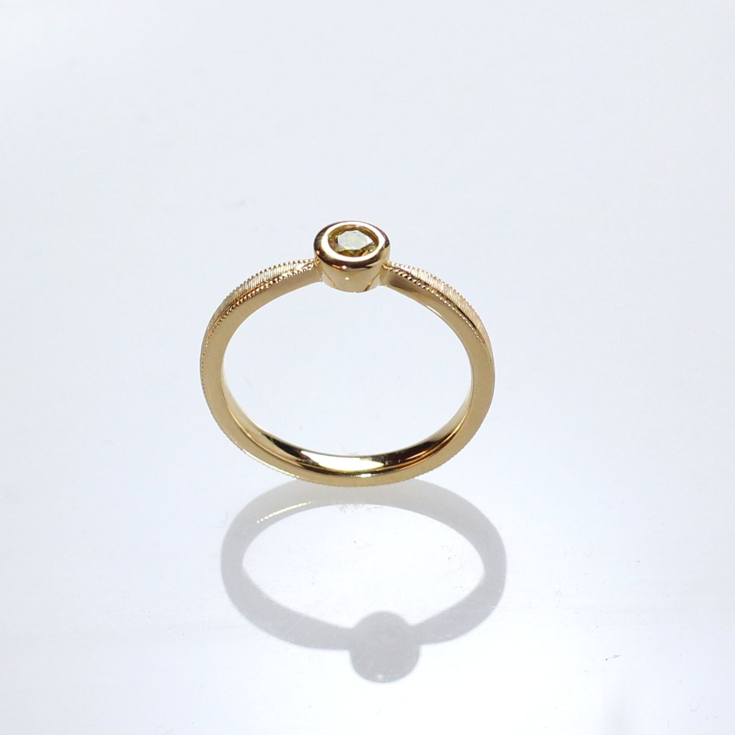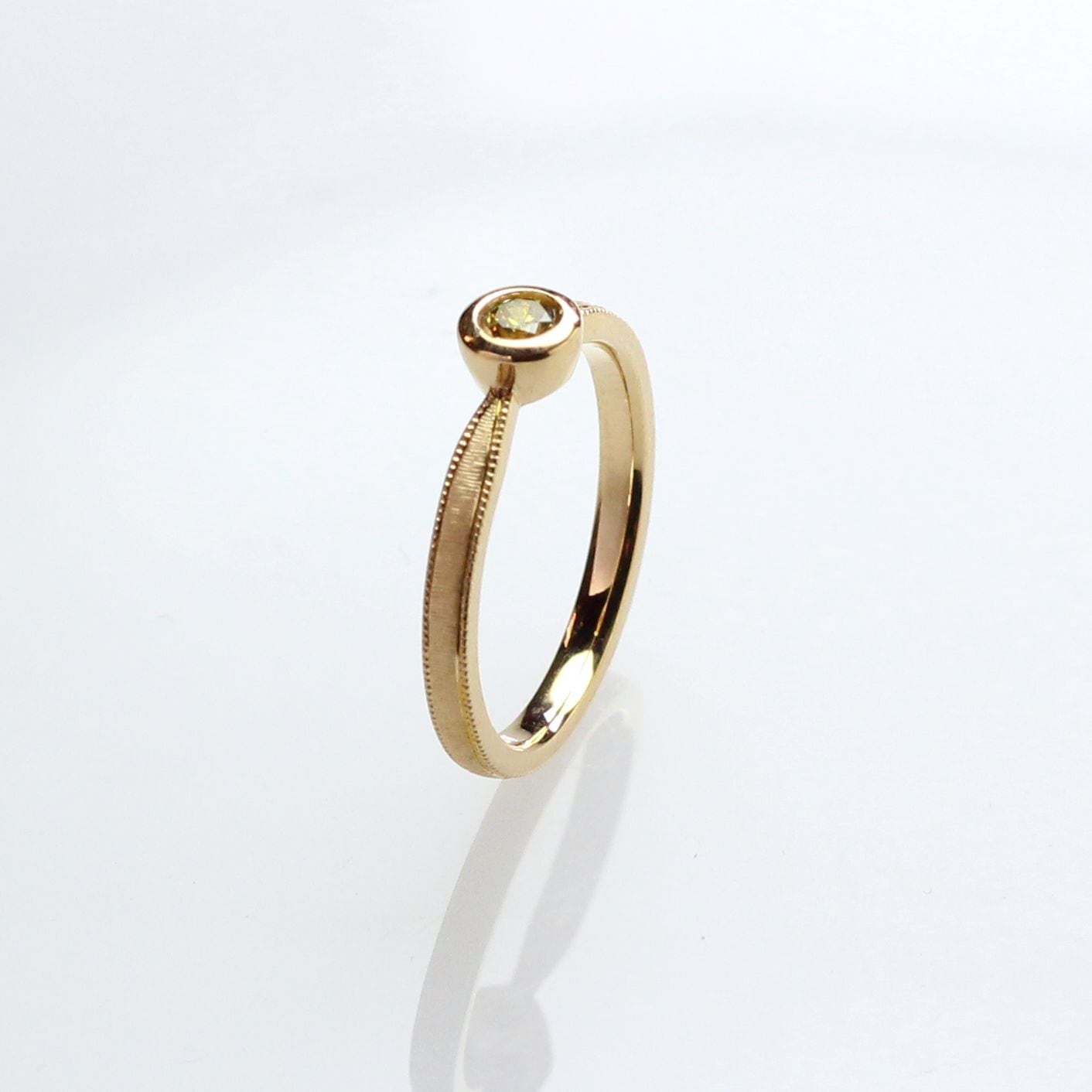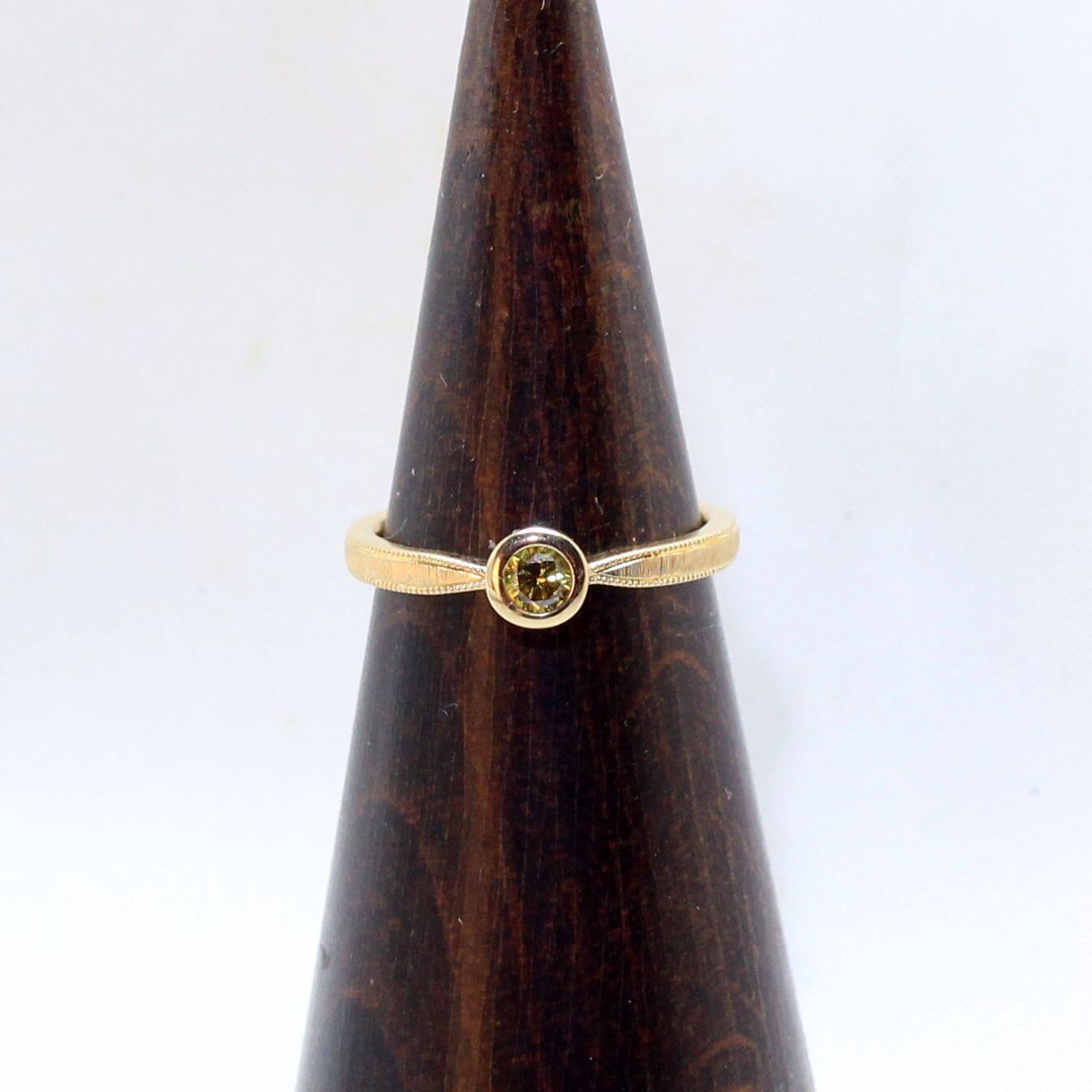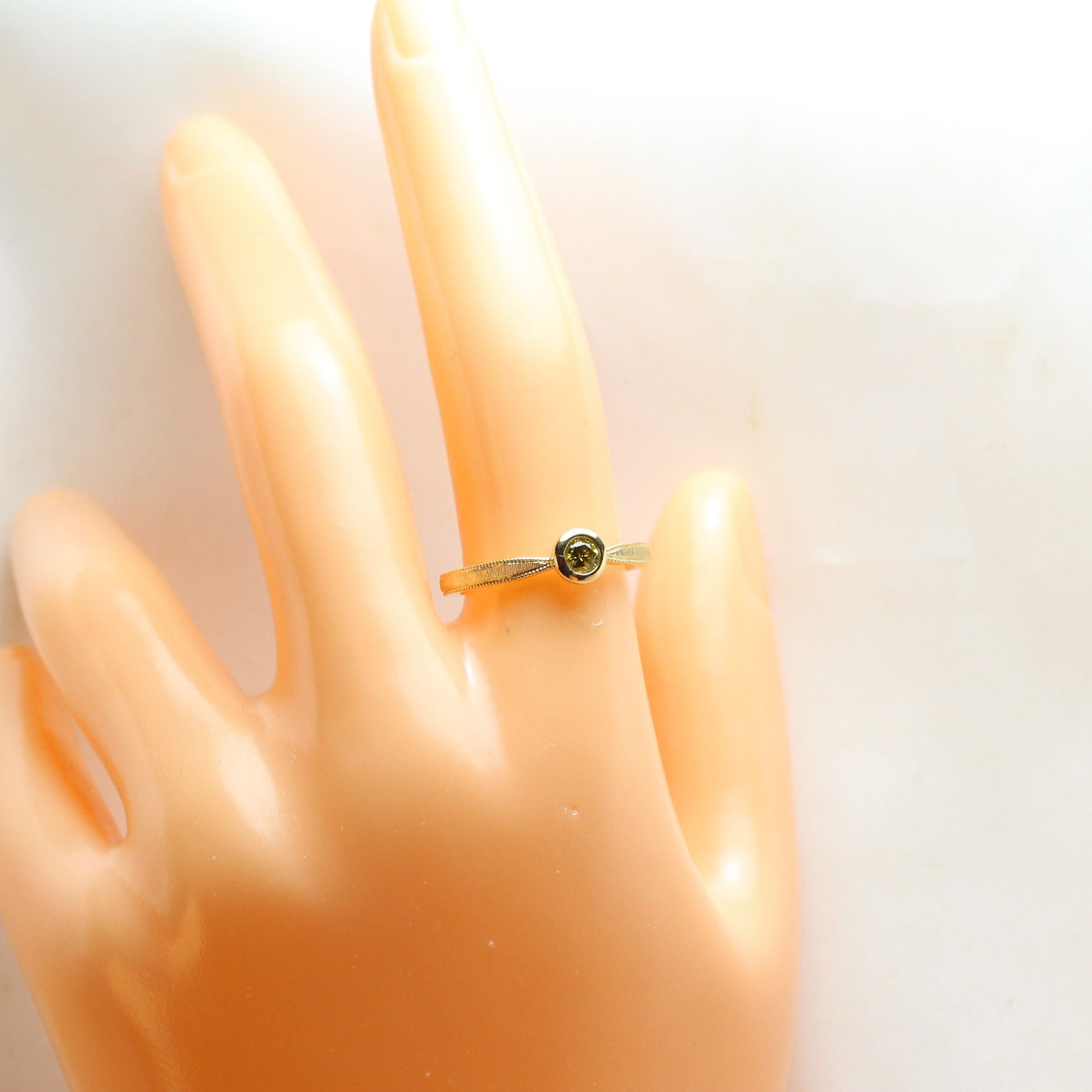 K18YG ファンシー ディープ イエロー ダイヤモンドリング 0.166ct(中宝ソーティング付き)