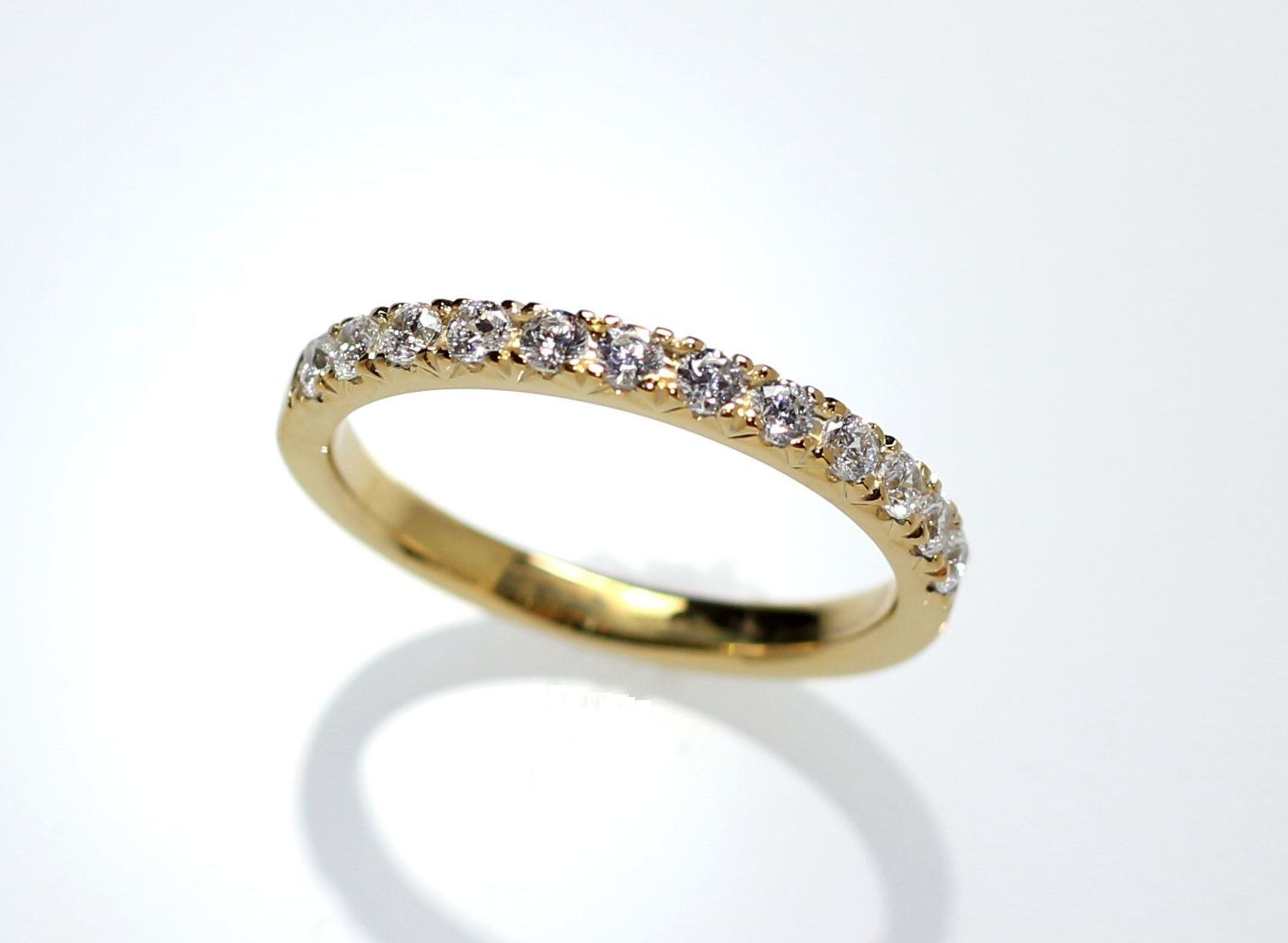 地金幅と石の直径がほぼ同じですので指にはめるとダイヤの輝きがより強調されるデザインになります。