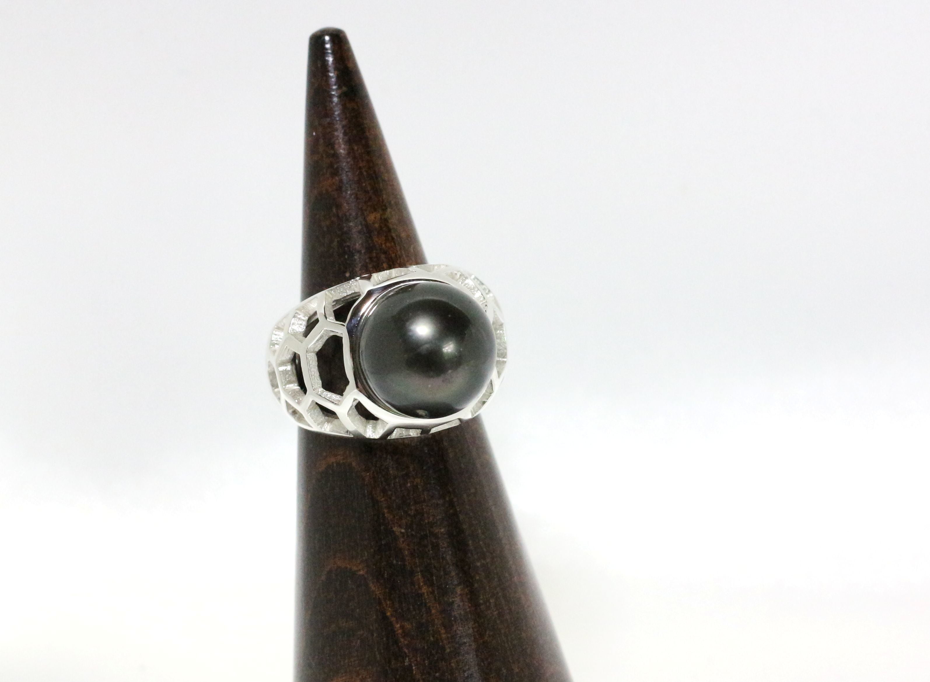 クロチョウ貝から生まれる大粒の真珠をセットしたリングになります。