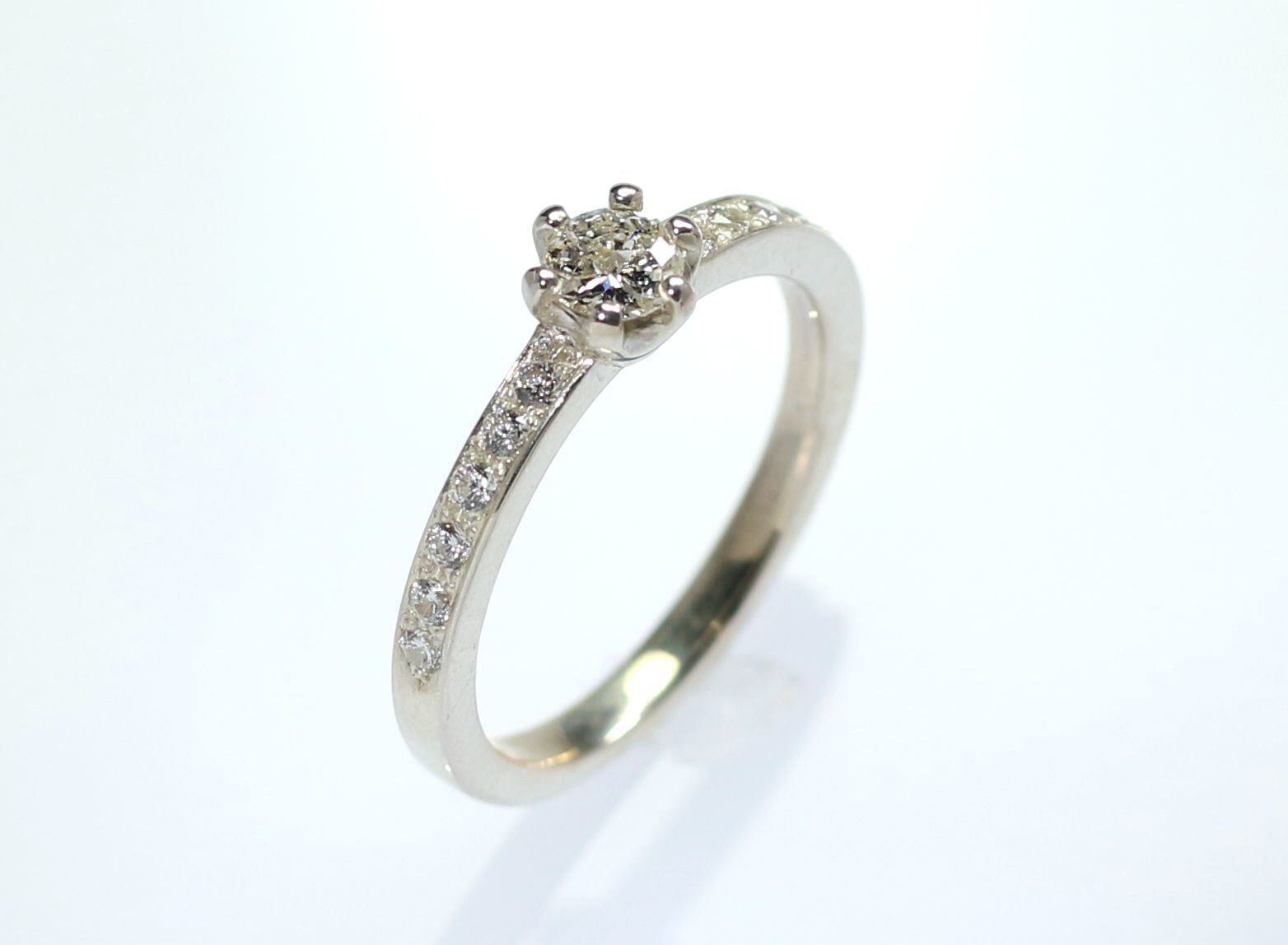 こちらの作品で使用している中石のダイヤモンドはブリリアントカットに比べテーブル面が無く細かいカットが施されているので一味違った輝きが楽しめます。