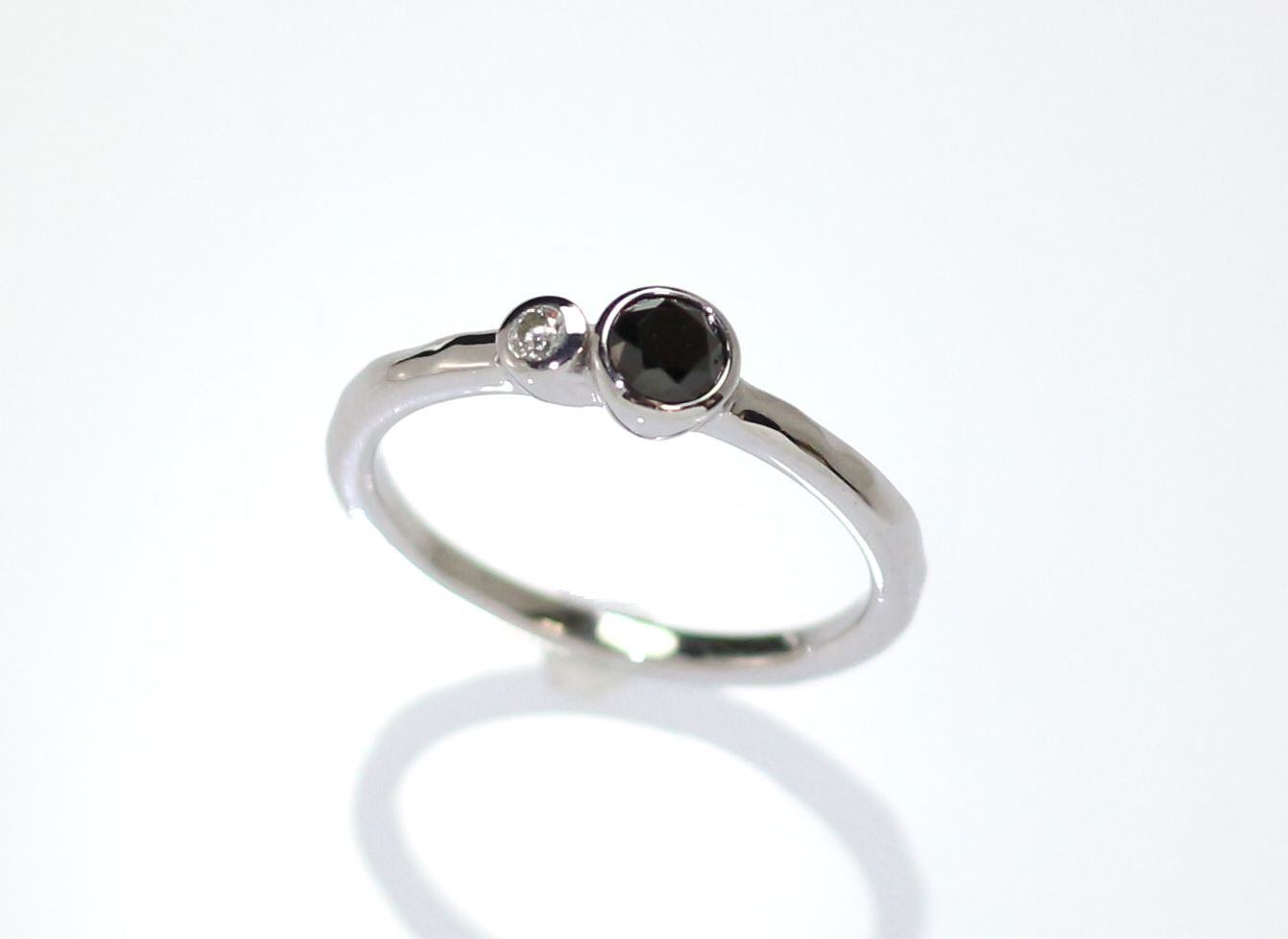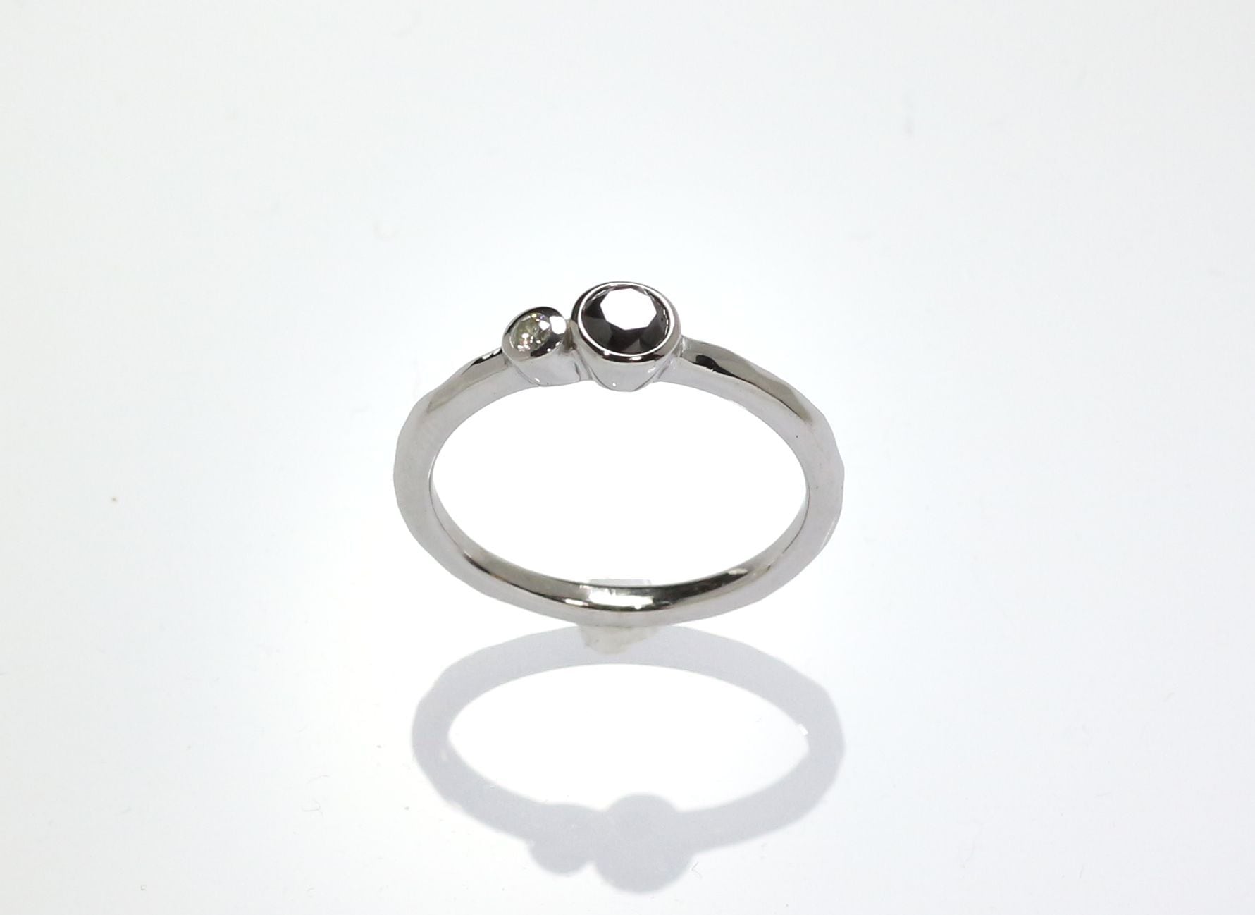 ブラックダイヤモンドをより引き立てるよう脇に一粒のダイヤモンドをセットしデザインいたしました。