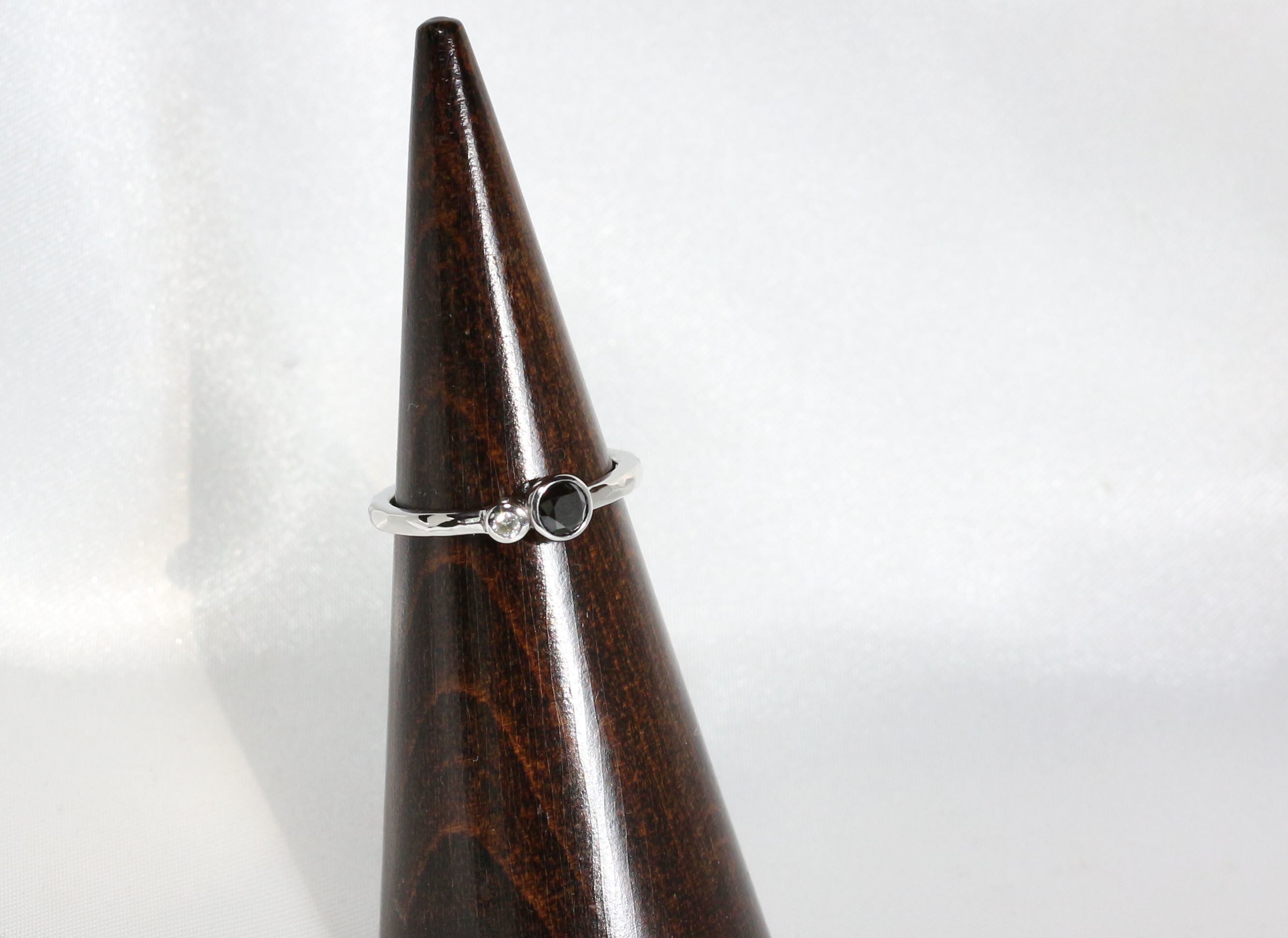 漆黒のダイヤモンドとプラチナの輝きの対比を楽しめるリングです。