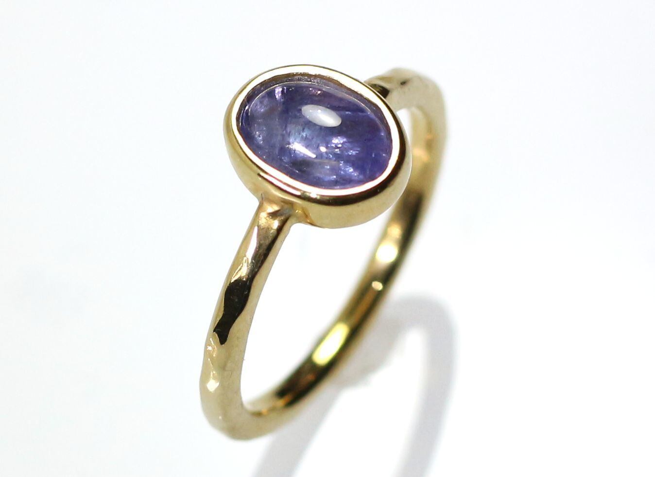 ころんとしたカボションカットのタンザナイトをセットしたリングになります。