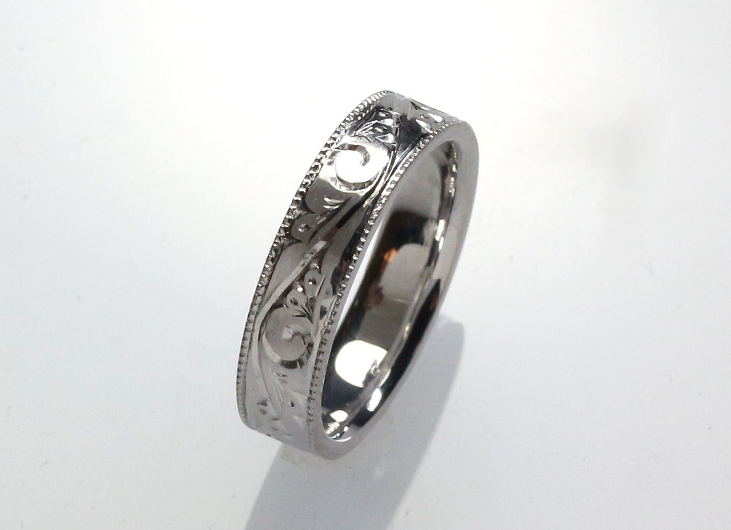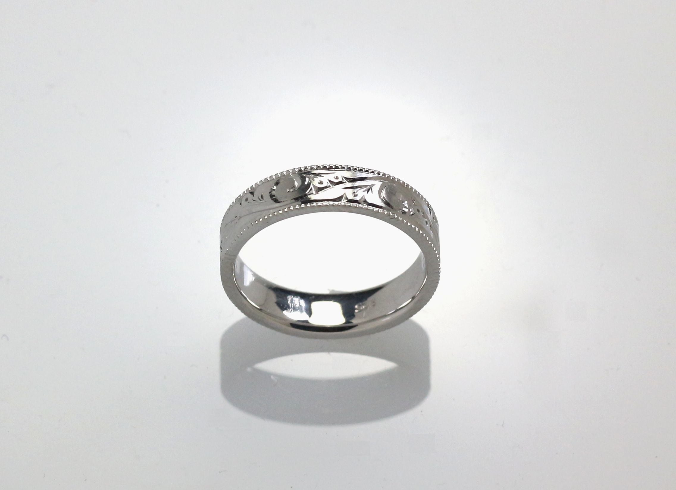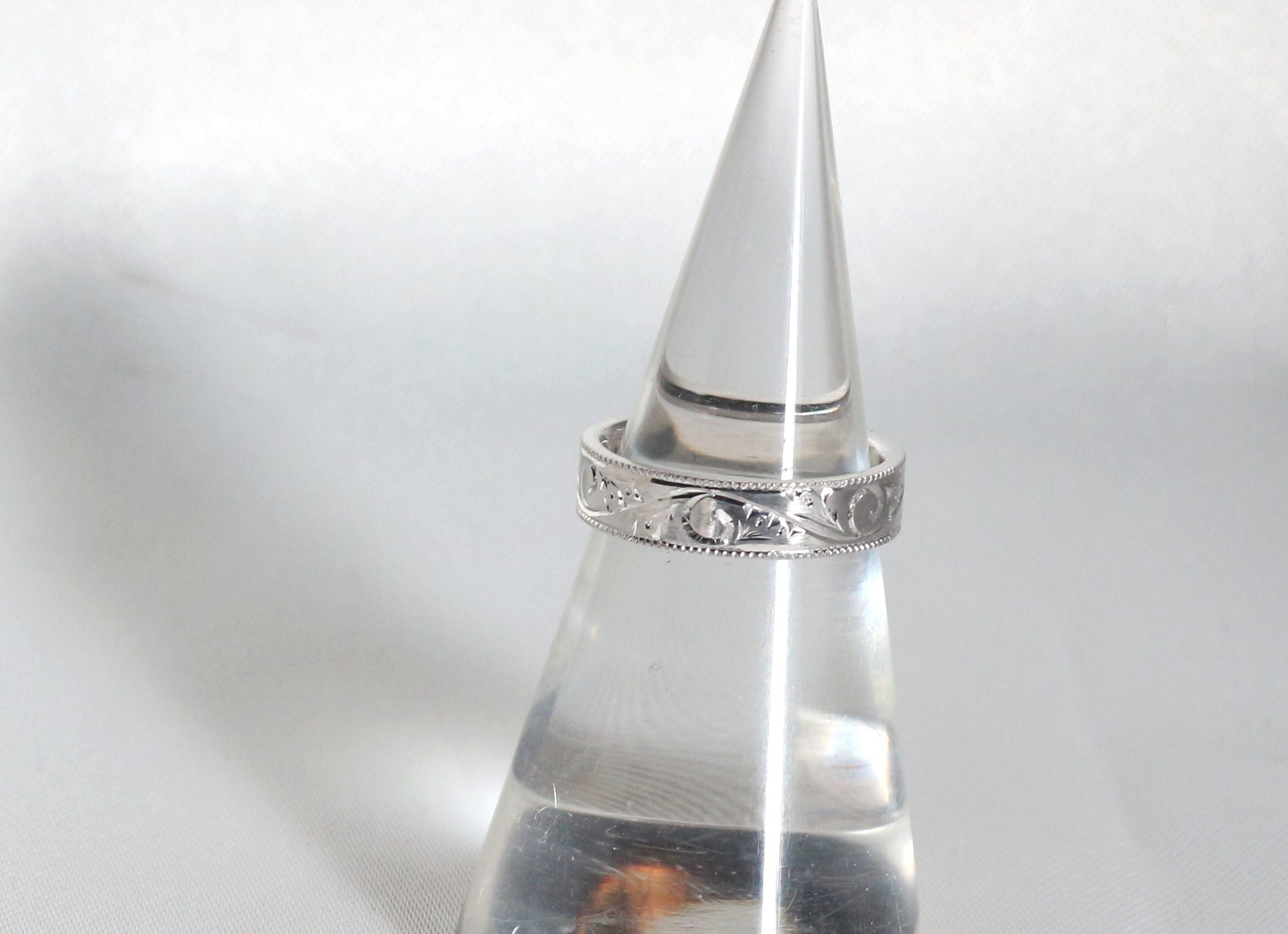 Pt900 手彫りリング(唐草模様) 4mm幅