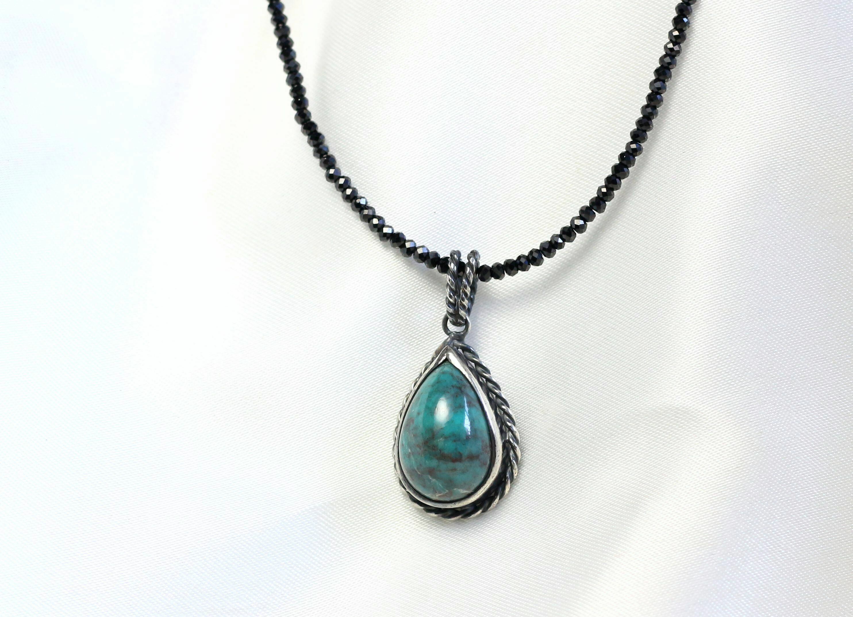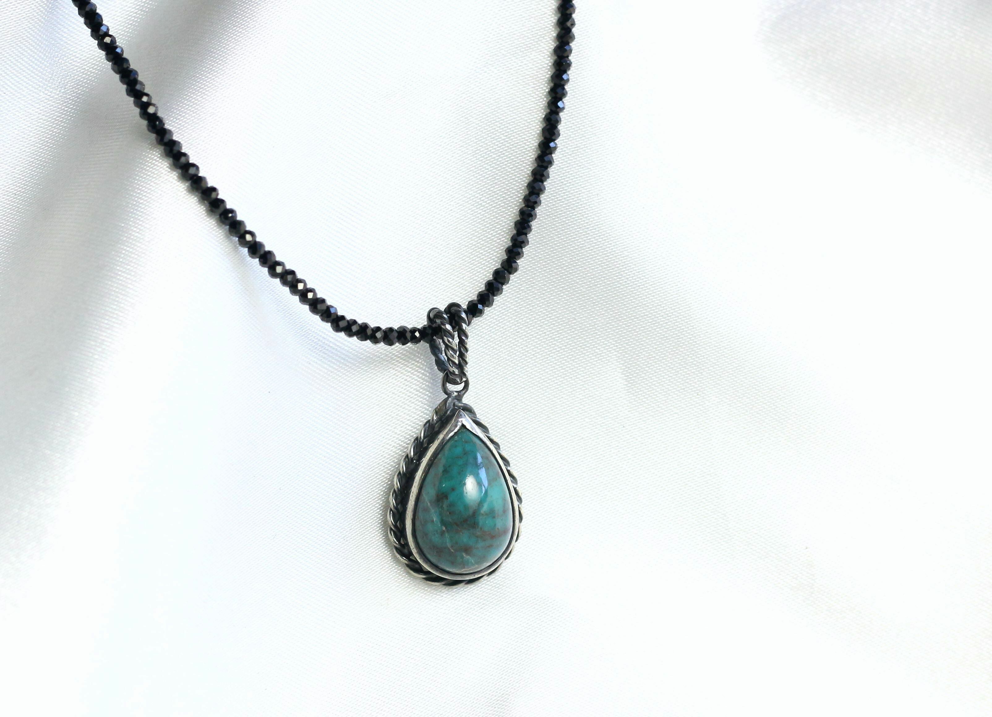 ターコイズペンダント 9.49ct ブラックスピネルチェーン付き
