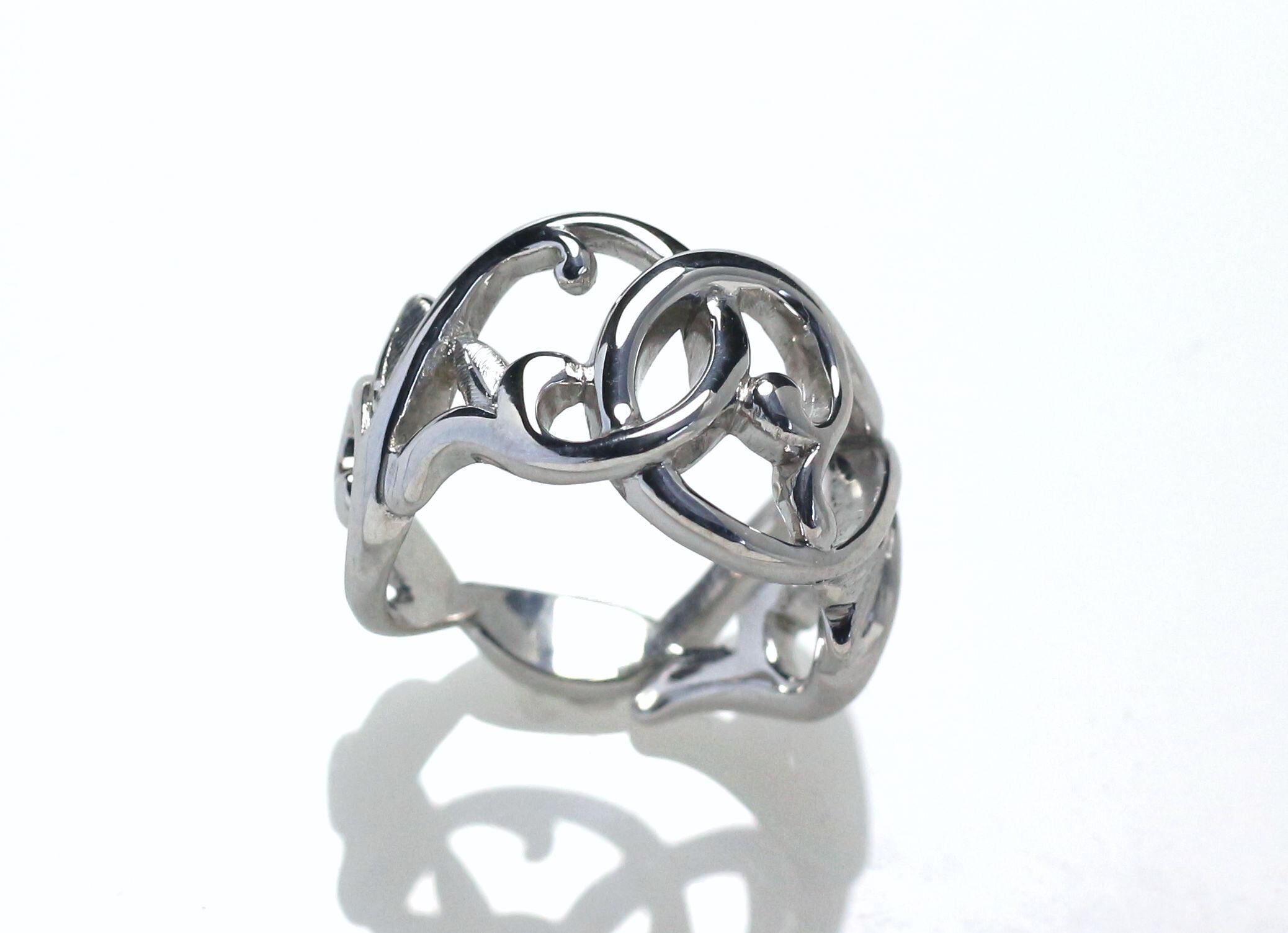 伸びやかに動きのあるデザインに大胆な透かしを組み合わせたアラベスク(唐草)モチーフの指輪になります。