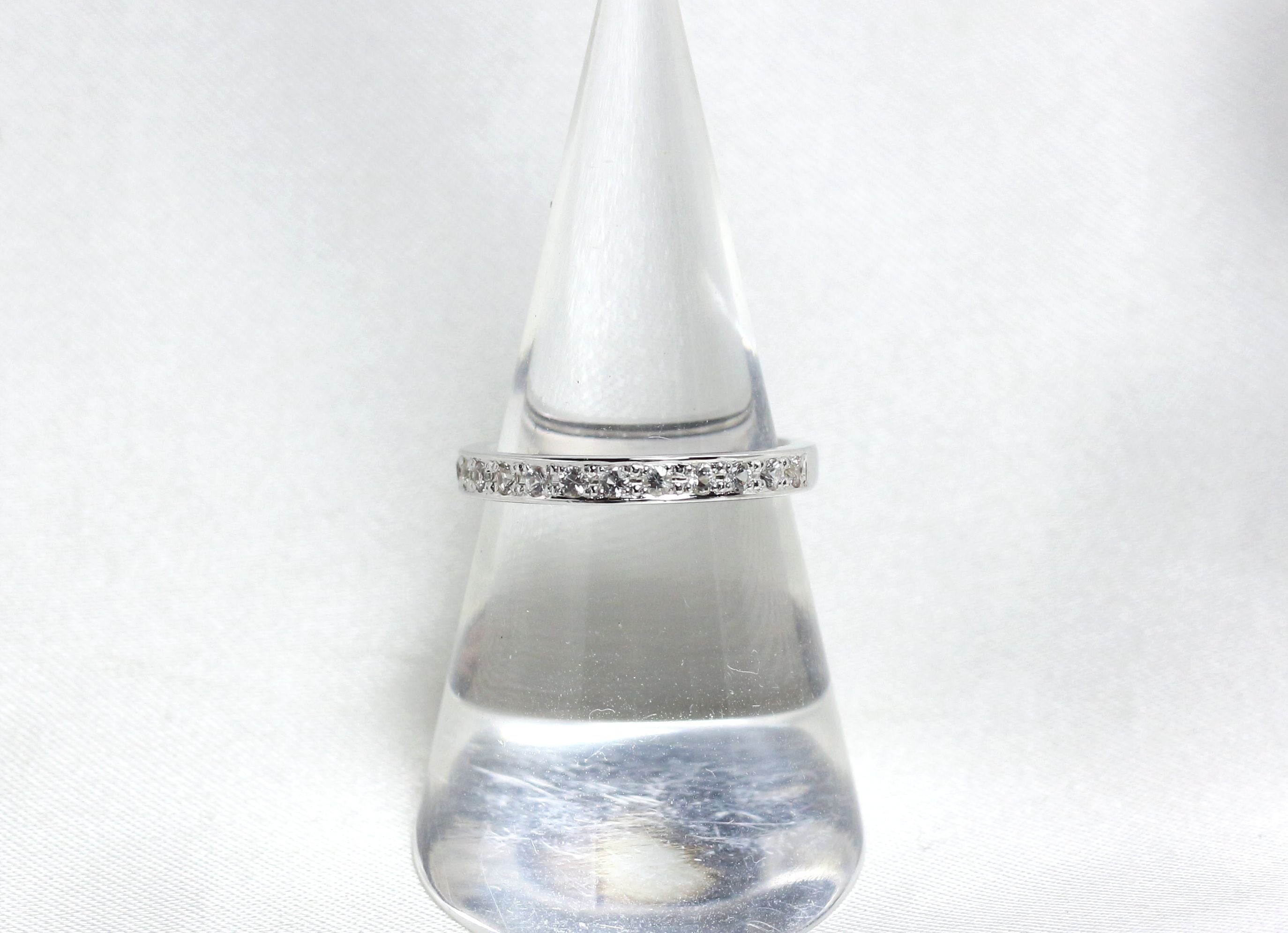 ホワイトサファイアを整然と一列にセッティングした指輪になります。