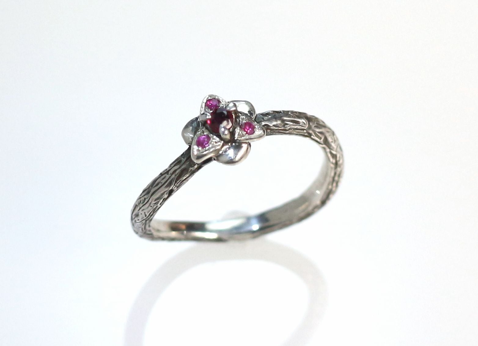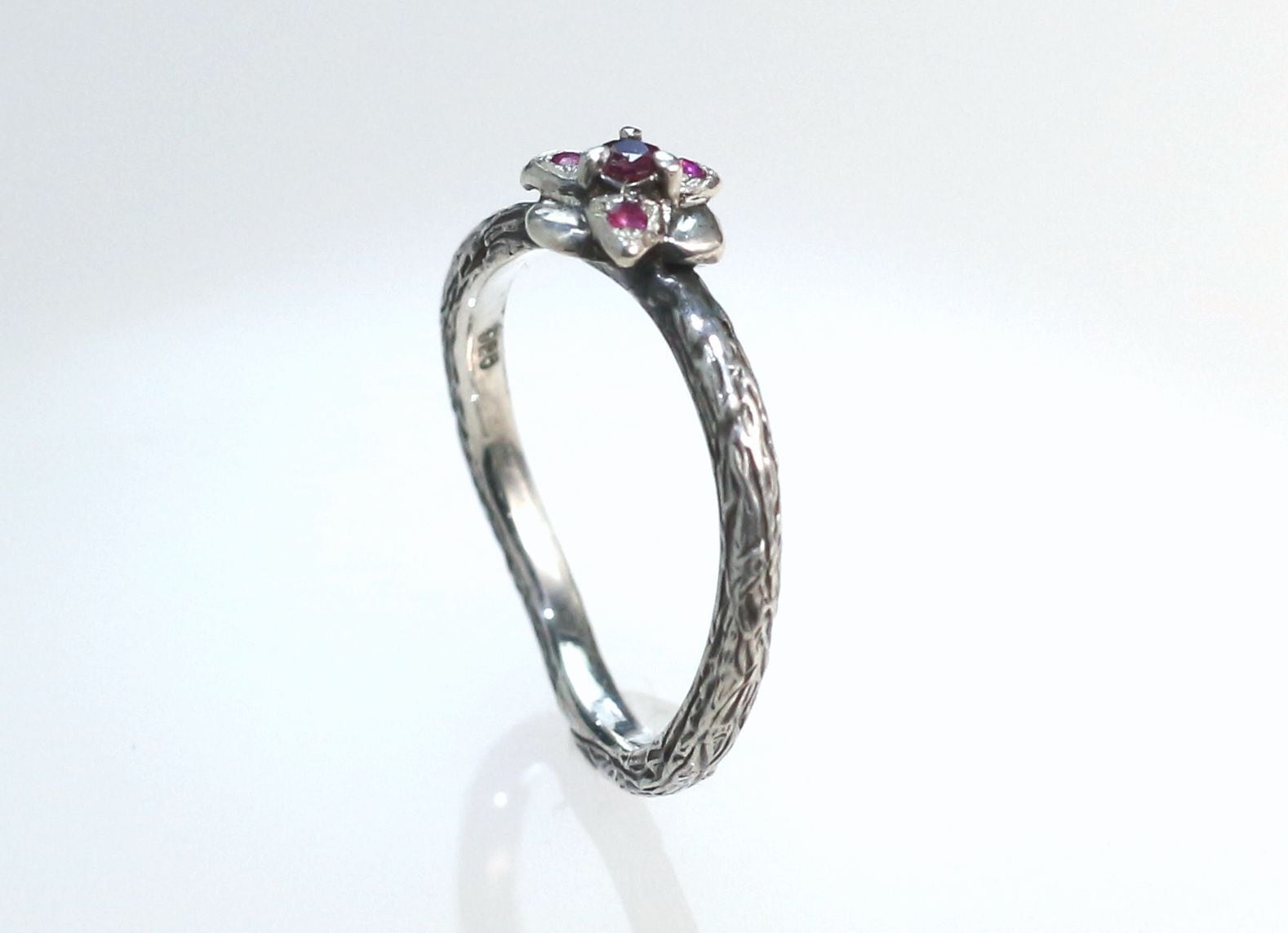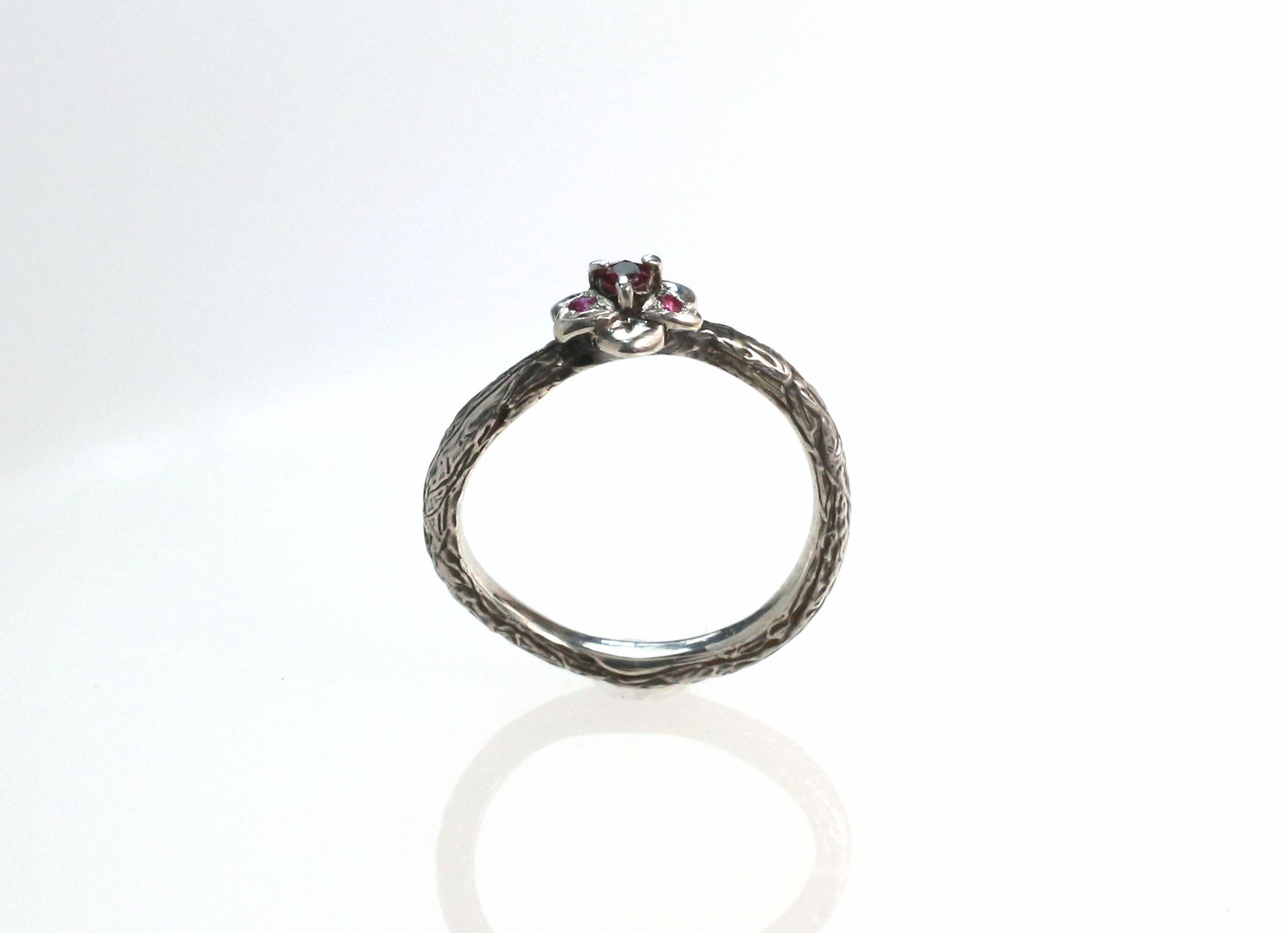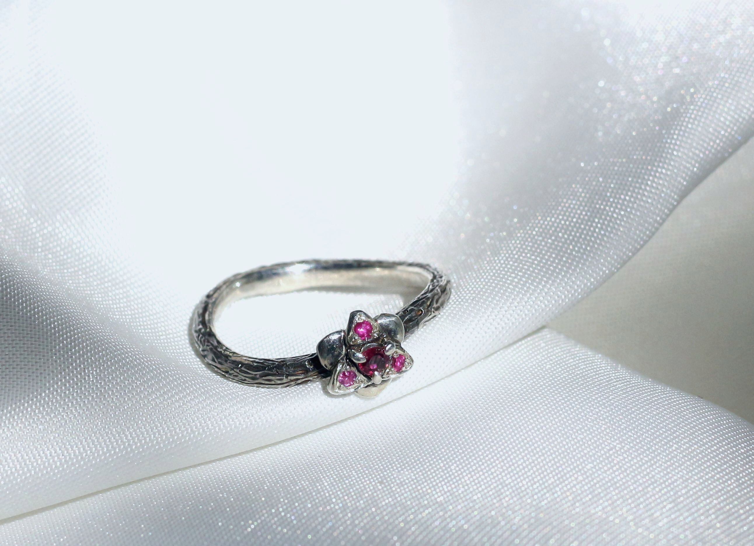 ダリアモチーフにルビーをセットした指輪になります。