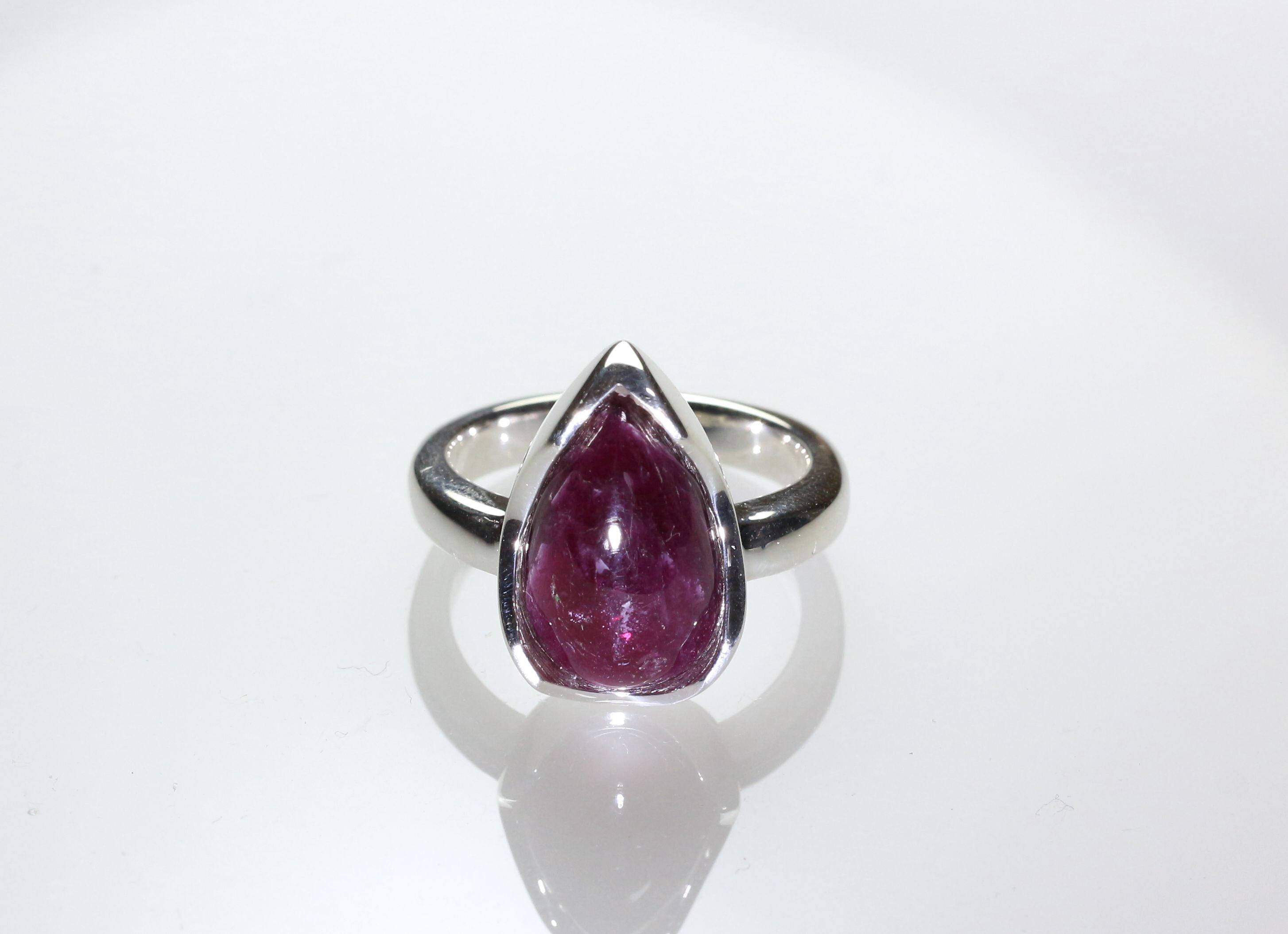 カボションカット・しずく型のルビーをセットした指輪になります。