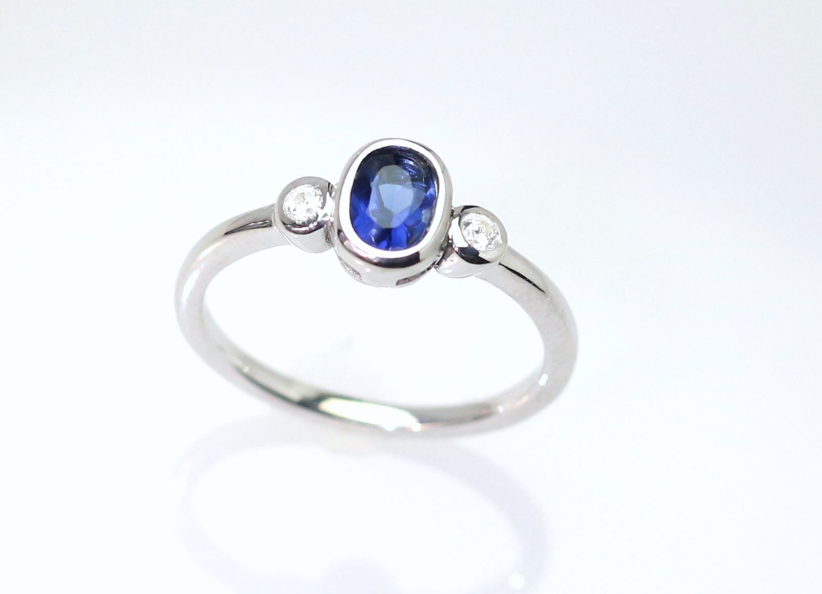 ブルーサファイアとダイヤモンドを組み合わせたシンプルながらも上品な指輪になります。