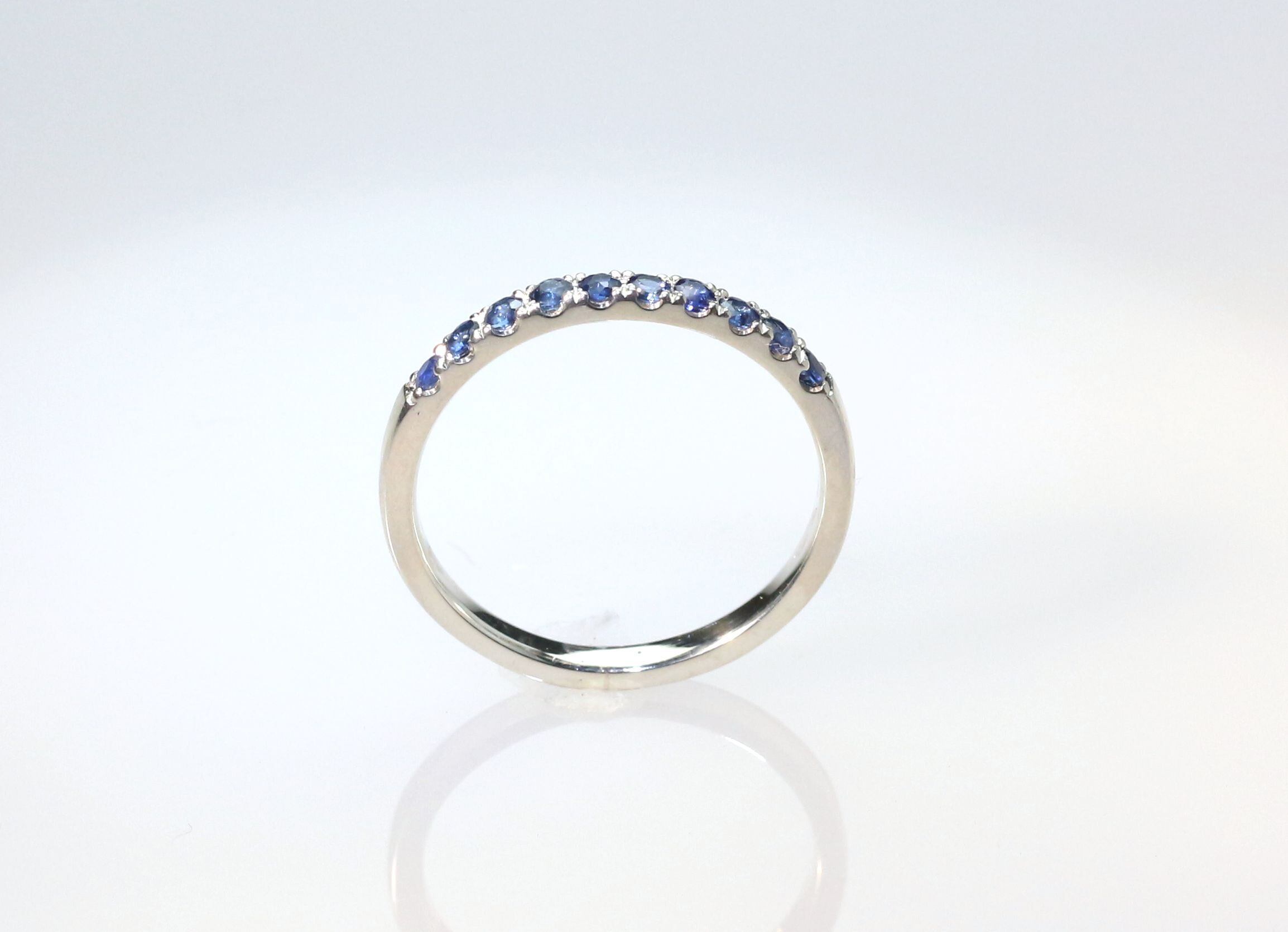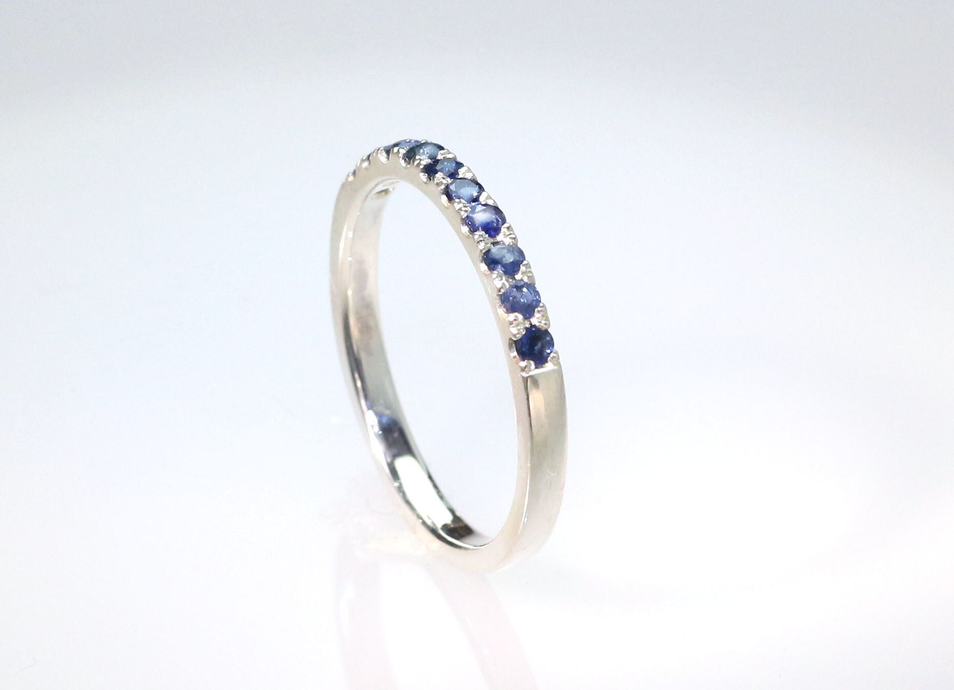 10ピースの小さなブルーサファイアを整然とセットした指輪になります。