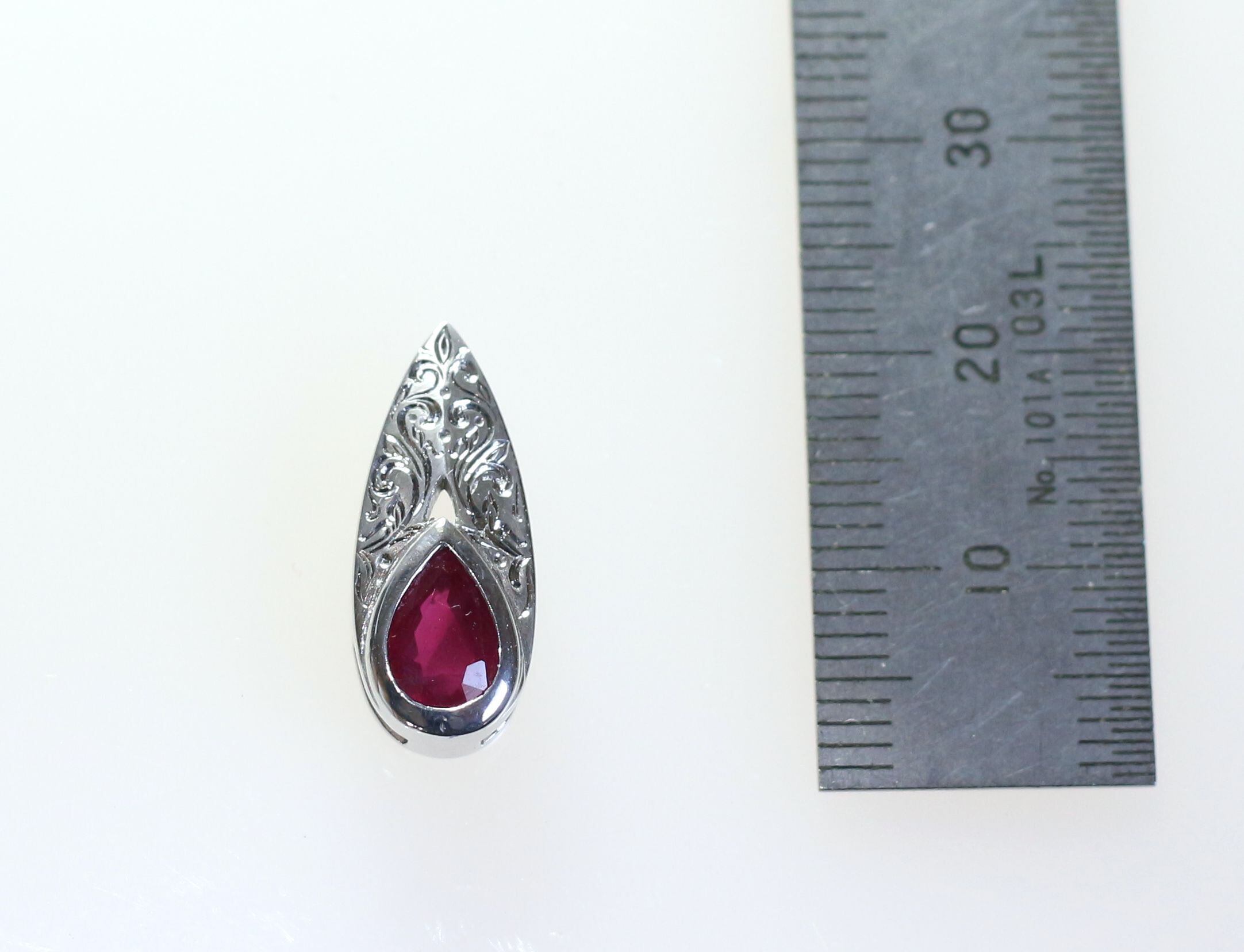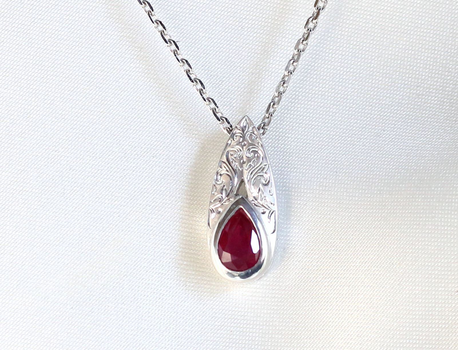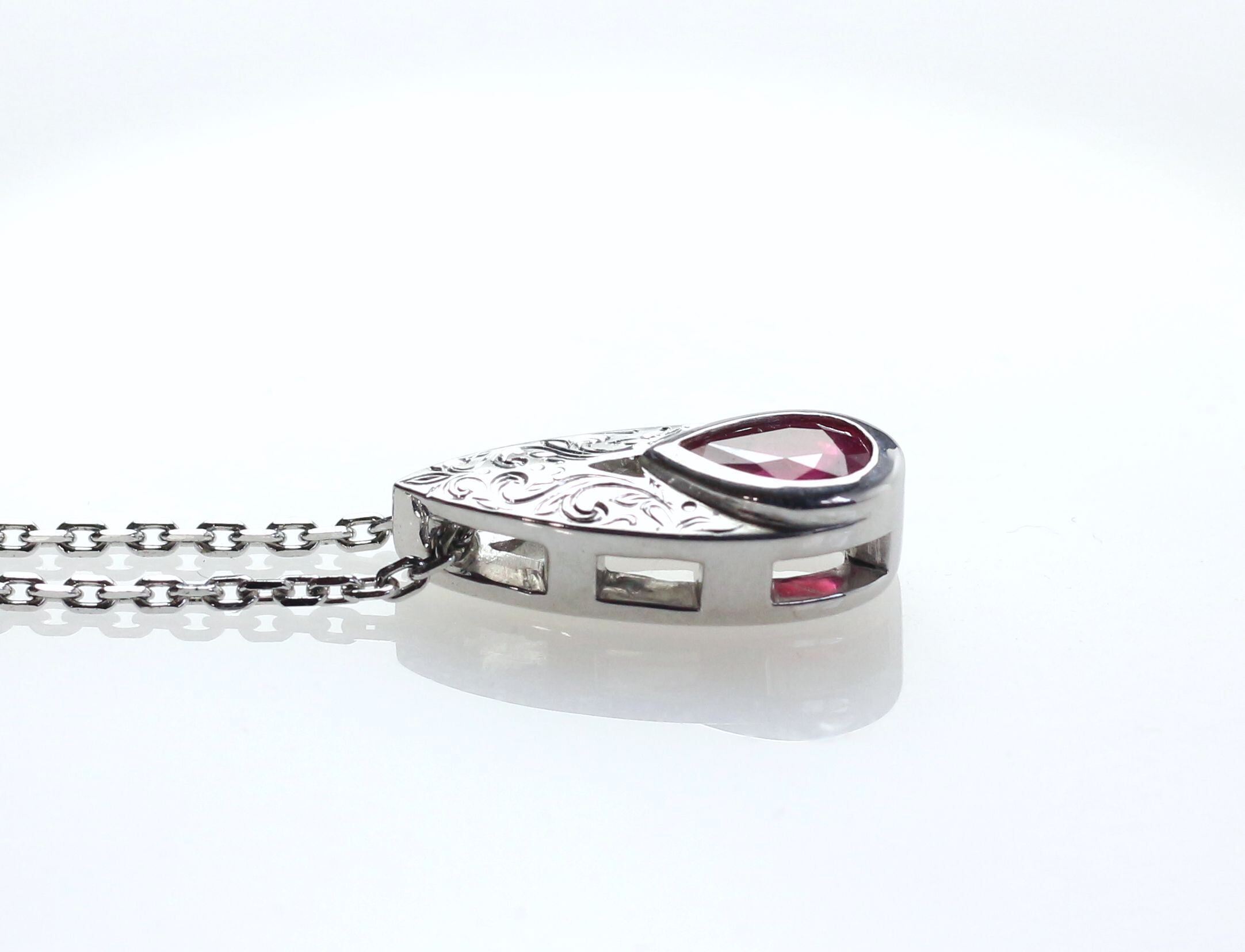 深く濃い色味が特徴的なルビーをセッティングしたペンダントです。