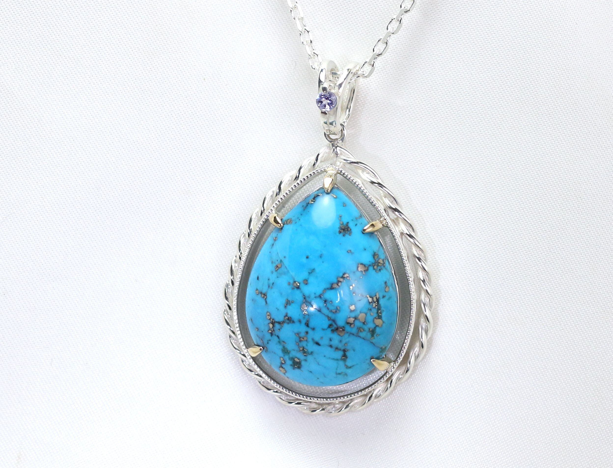 Sv925&K18YG ターコイズ&タンザナイトペンダント 46.40ct