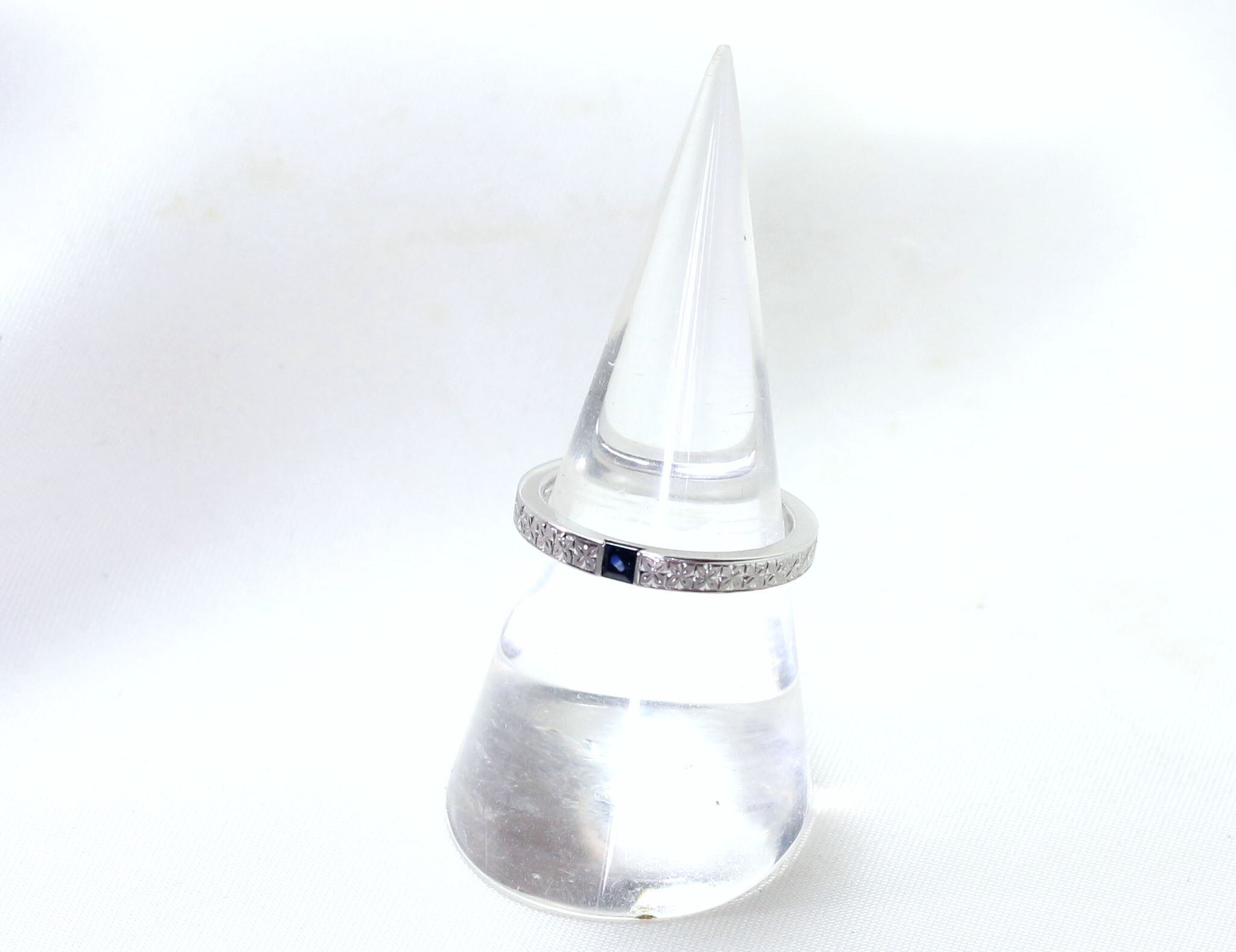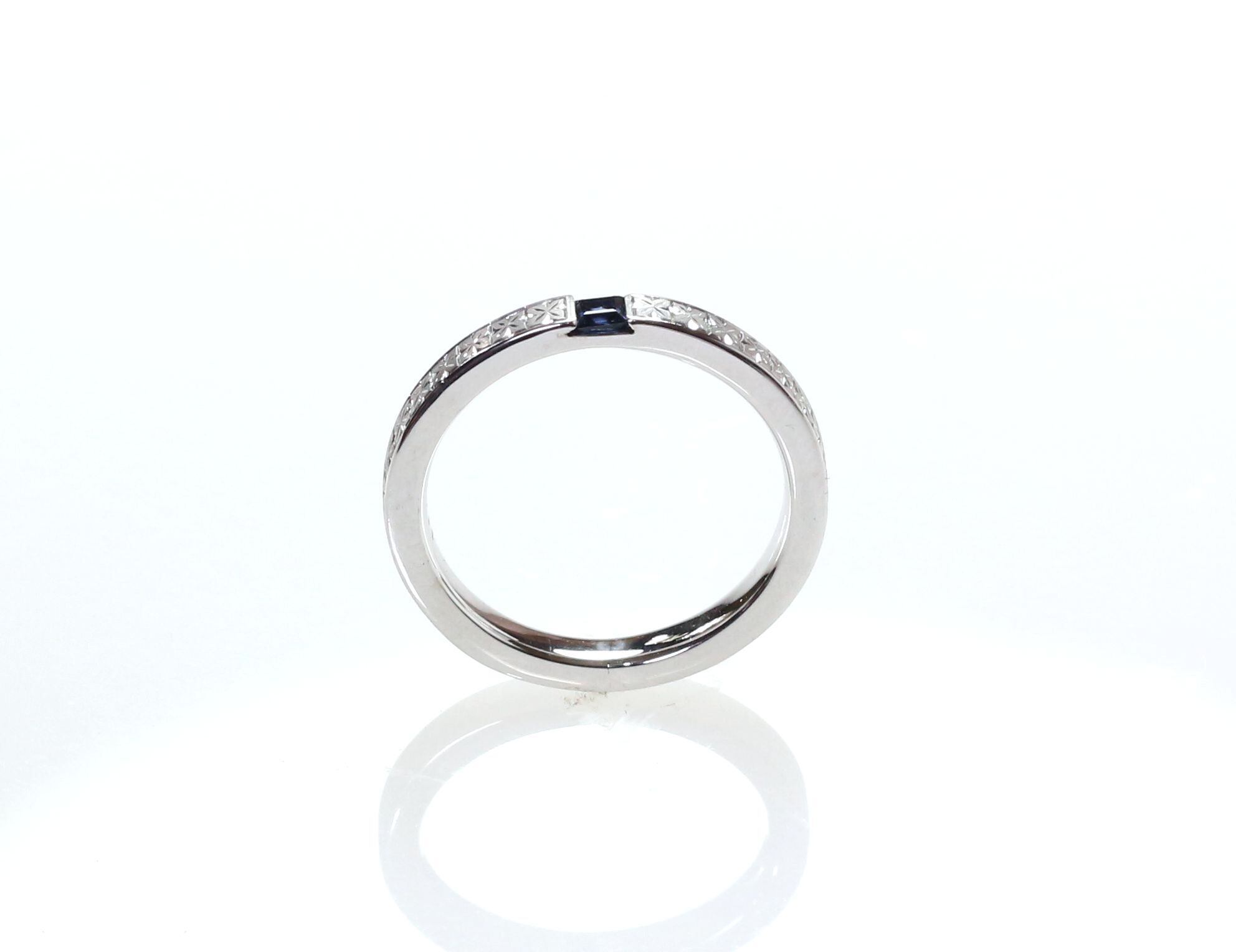 スクエアカットのシャープな雰囲気のサファイアをセットした一品です。