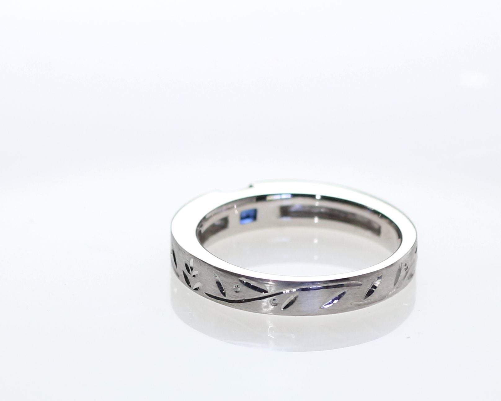 スクエアカットのサファイアをセットしたプラチナリングです。