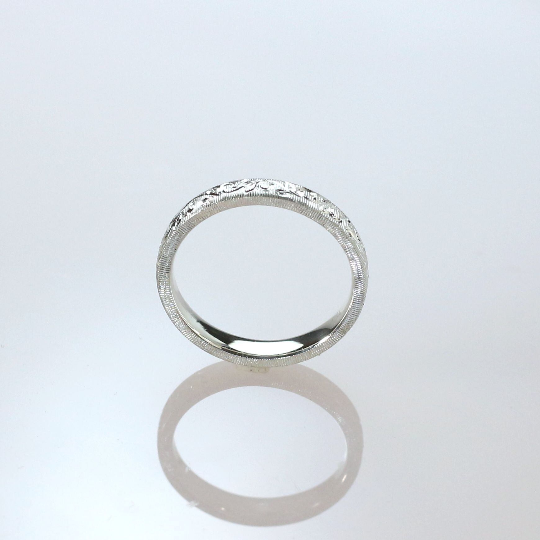 Pt900 手彫りリング(唐草&シルクサテン)